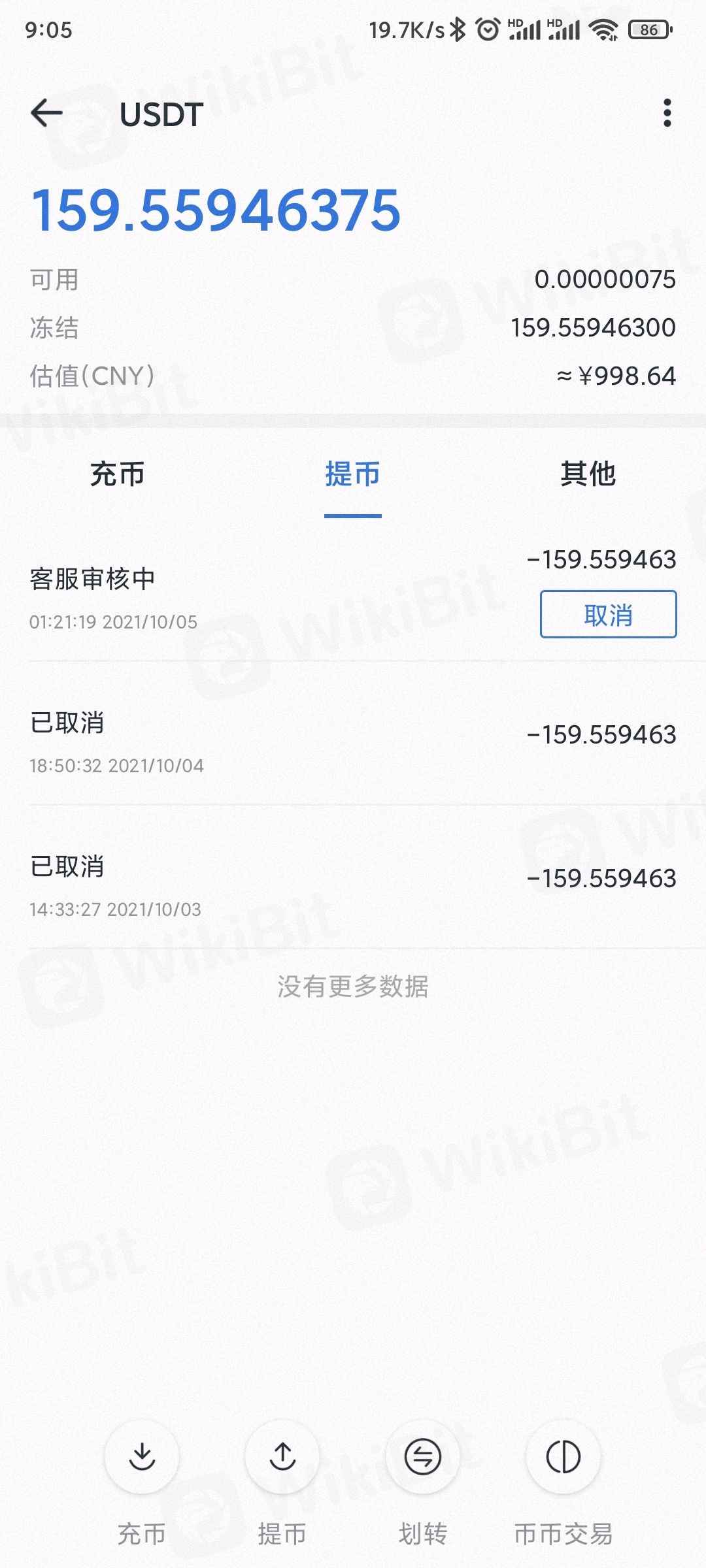 10.2开始禁otc。然后不给提币了,提币一直审核