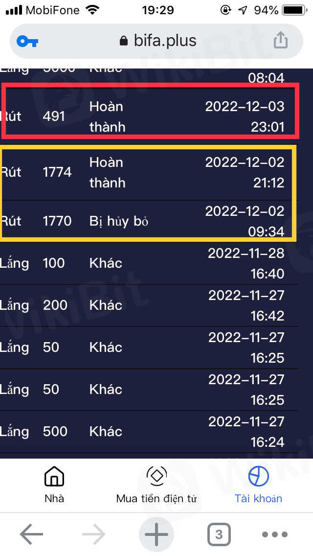 mọi lệnh rút tiền điều bị hủy