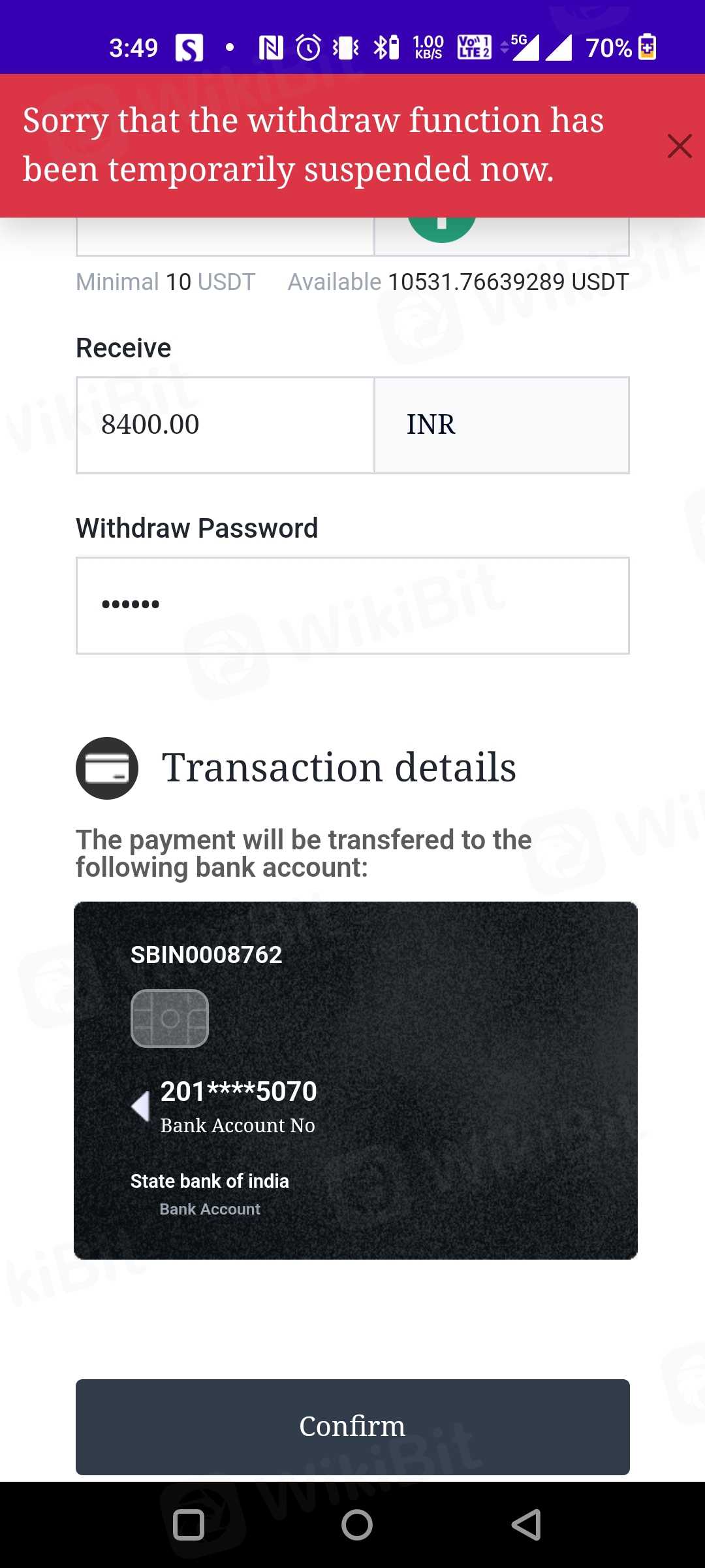 unable to withdraw my money from 7 July 2023