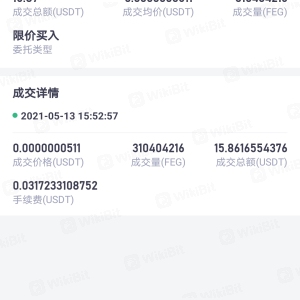 5月13号下午,抹茶上线了一个新币FEG,当时我买了3.1亿枚,买过之后就没有了这个资产,大家当心,不能在这样的交易所买币,资产没有保障