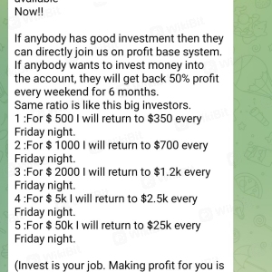 Yo aquí ya, lo mismo me pasó a mí, todos totalizaron al menos 2000, todo parecía legítimo. Incluso si los buscas en Google, aparece como una compañía legítima. Hay toneladas de ellos en Telegram y se ven y suenan tan legítimos. Soy nuevo en esto, así que fui ingenuo y tuve que aprender de la manera difícil, pero ya conoces el dicho, si algo suena demasiado bueno para ser verdad, generalmente lo es. Gracias a Dios, gano mucho dinero y puedo trabajar un par de turnos más y recuperarlo. No sé cómo duermen esas personas por la noche, ni siquiera para usar el nombre de Dios en
