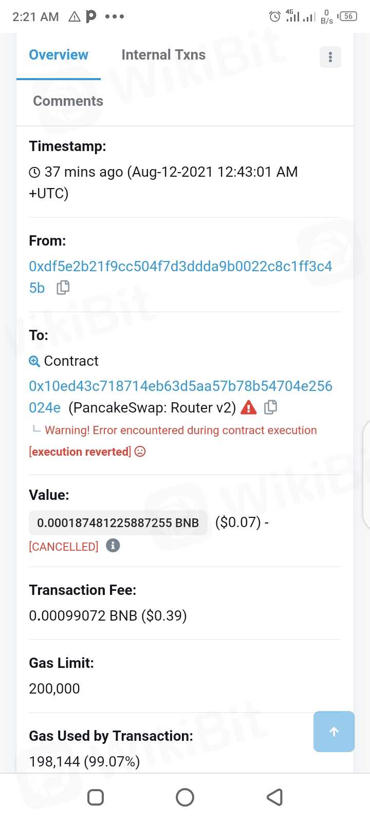 swap BNB with SafeBTC but the transaction failed and amount not reverse
