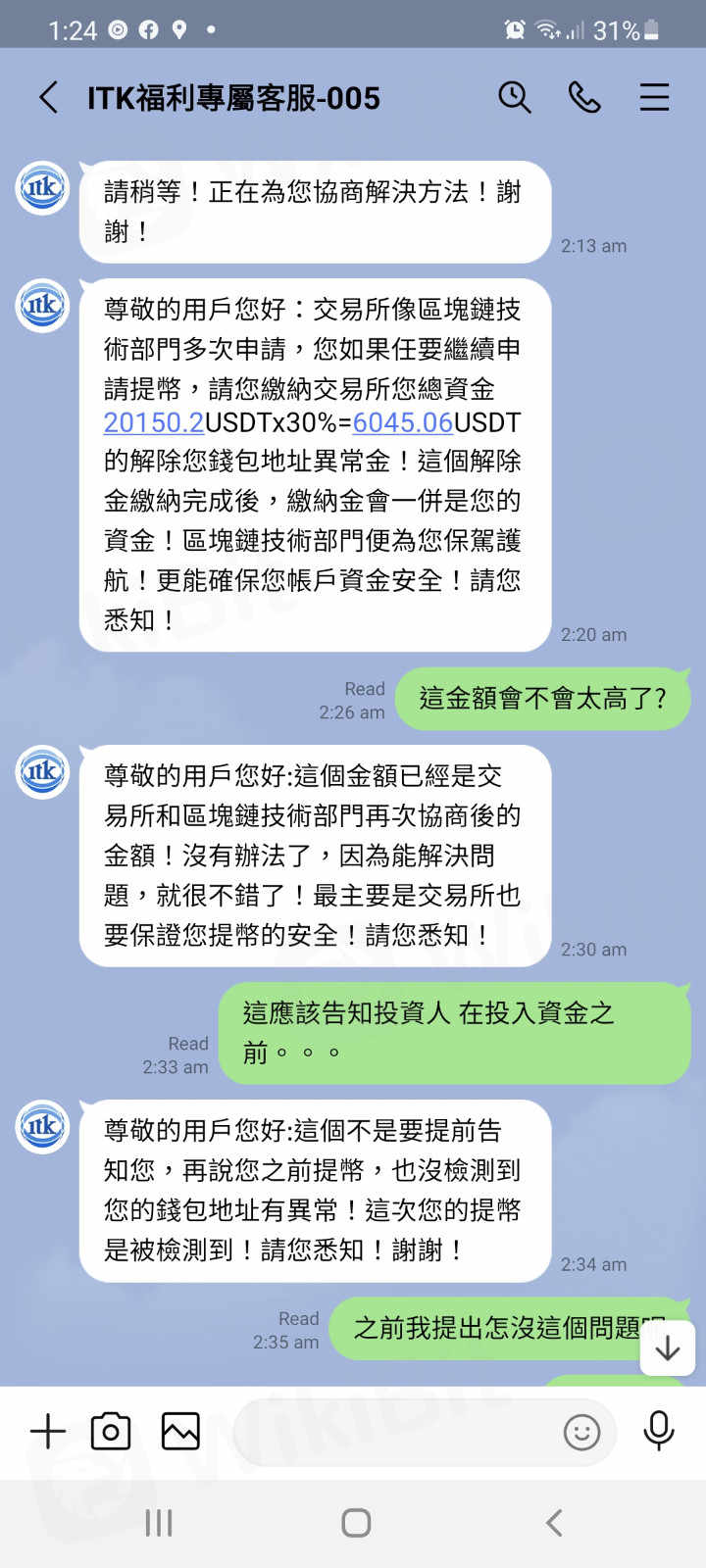 Engañaron a la gente en Line o Wechat y los llevaron a depositar. Cuando su saldo aumenta, su cuenta se bloquea y no se puede retirar. Las direcciones de la billetera eran las mismas y el grupo se llevó todo el dinero.