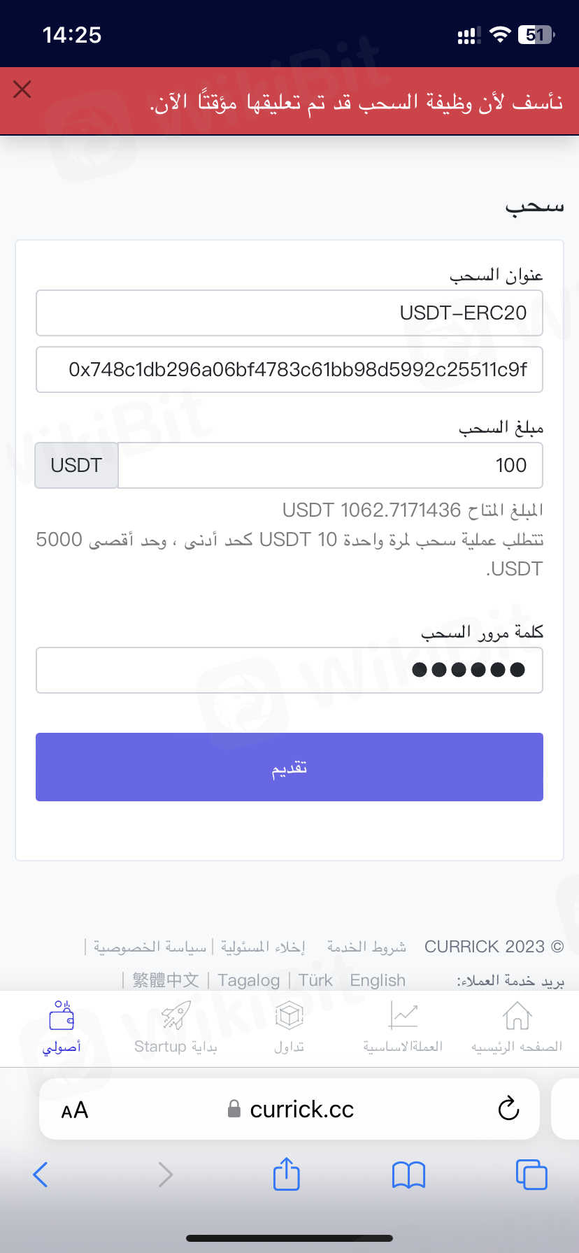 نرجو متابعه الموضوع لانستطيع السحب من المحفظه
