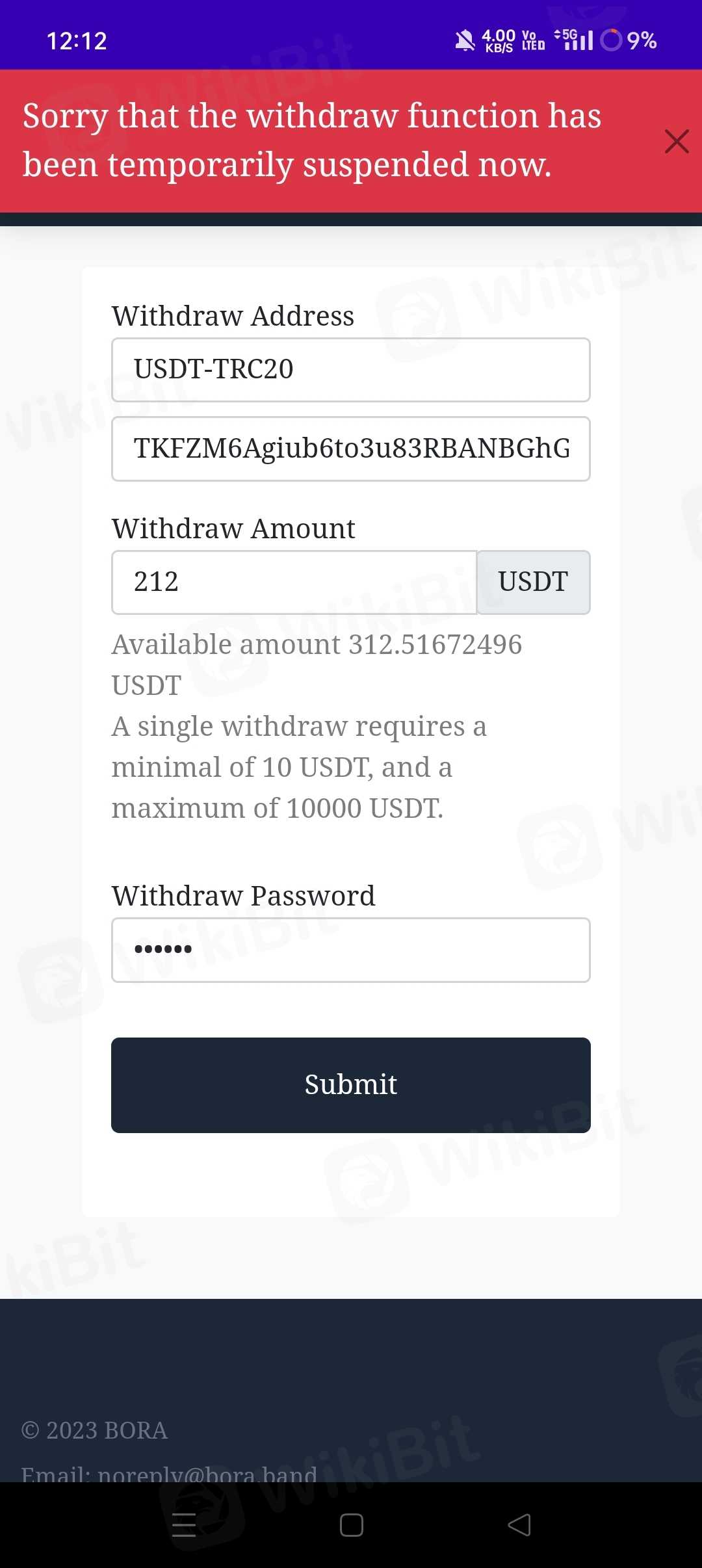 This is crypto trading platfrom dally traid and 5 % profit retrun.... My wallet Avl usdt 312 bt not withdrawal my usdt ....