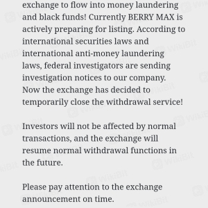 every time when Berry see that people are starting to make some profit...they make an excuse to close withdrawal so that people can't withdraw their money..they will tell you about system upgrade or system maintenance just to avoid you from getting your money ..I hate the day I was introduced to this scam thing 😭😭.... I would advise anyone who want to join it to stop before you endup regretting yourself like me.. they locked all our money and told us to wait 90 days and we did,, on that waiting we were generating small money by trading and by signing in after they saw that we have enough money we can withdraw they closed withdrawal process ,,they told us to activate our account with 50$ the accounts we had been using for months and we did that after that they Took all our money whenever you deposit they took it. right now people are hungry and others are in deep debt because they trusted berry and FS Global with all their money.