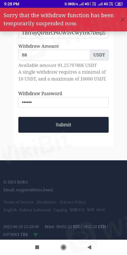 Bora scem withdrawal suspend