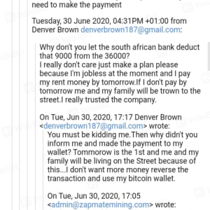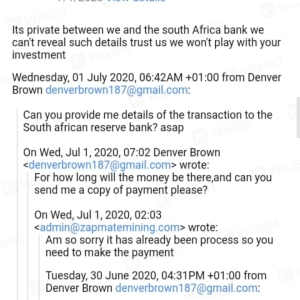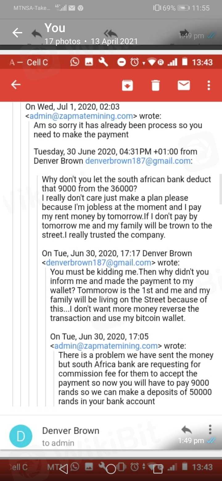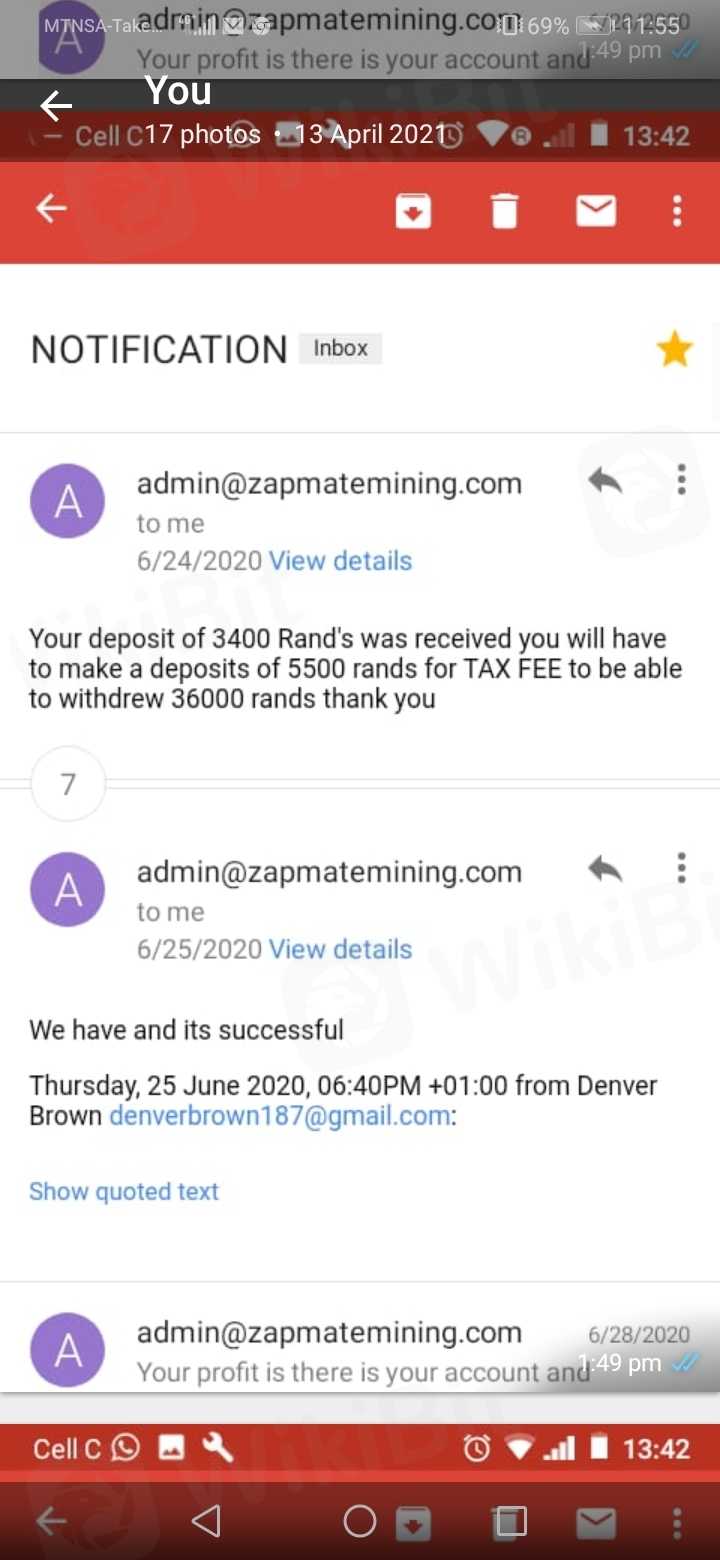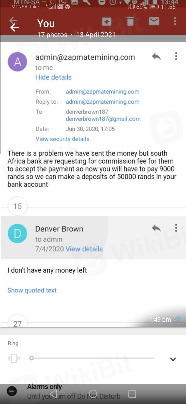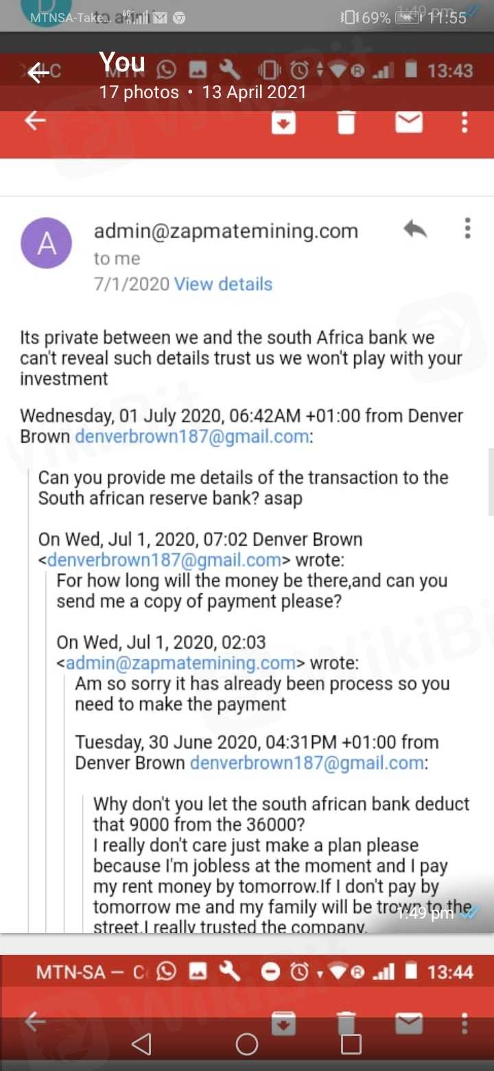 Namuhunan ako ng pera at ngayon hindi na ako makakakuha ng pag-withdraw. Nagbayad ako tungkol sa R 9000 sa mga bayarin ngunit hindi ko makuha ang aking pera. Namuhunan ako sa zapmatemining. Mangyaring payuhan kung ito ay isang scam