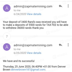 I invested money and now I can't withdraw. I have paid about R 9000 in fees but I can't get my money. I invested in to zapmatemining. Please advise if its a scam