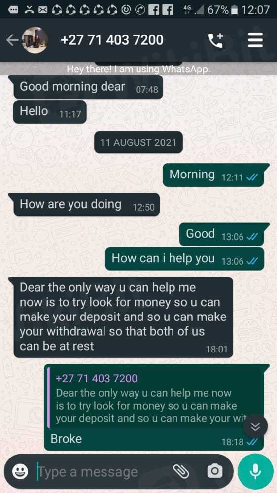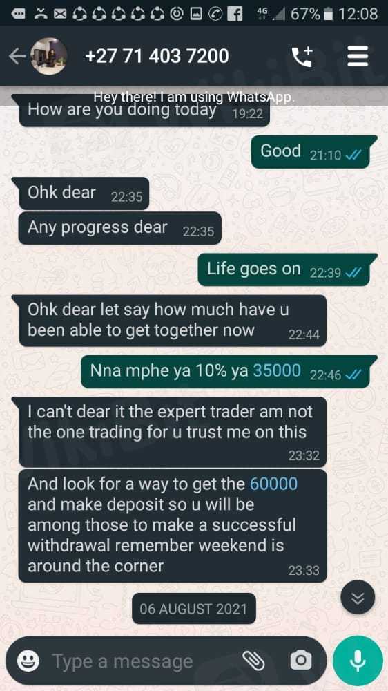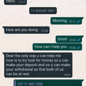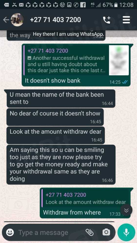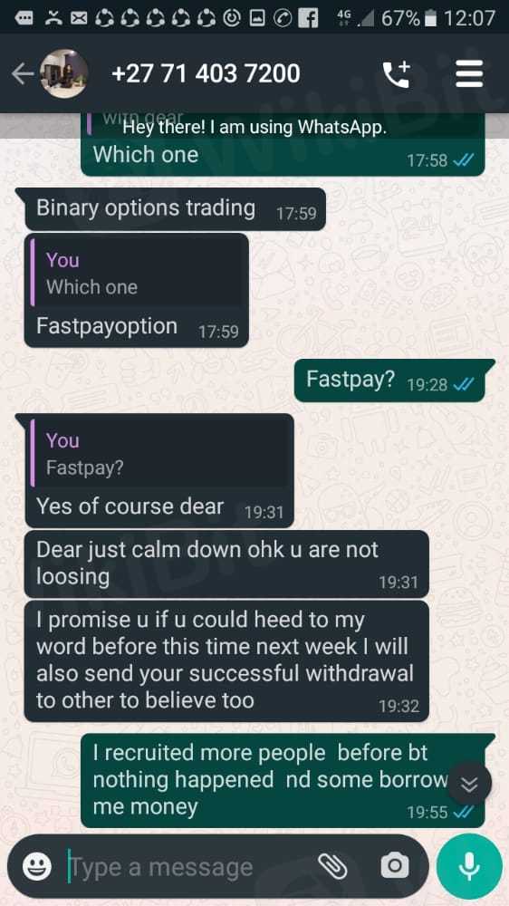 Ako ay na-scam ng puwersa at fastpay na pagpipilian, sinabi nila sa akin na nagtatrabaho sila sa ilalim ng negosyanteng si Luno. Ang pangalan ng aking referral ay tinawag nilang Ayanda Emely at Lebogang Aphane. Inilagay ko kay Luno ang perang 50000. Tila nawala ang pera at sinabi nila sa akin na magdeposito ng 170000 upang makakuha ng 1,4000000.