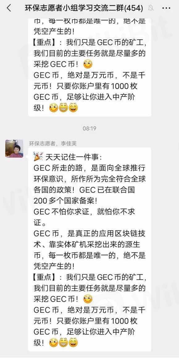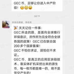 GEC环保币现在也是穷途末路了,如今不断拉人只是为了填坑,对于那些进坑的人回本也是遥遥无期。 还有一些gec的人到处宣传,大家一定远离!