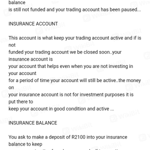 I invested to this and when I had to withdraw my profit they told me to pay insurance fee of R2300