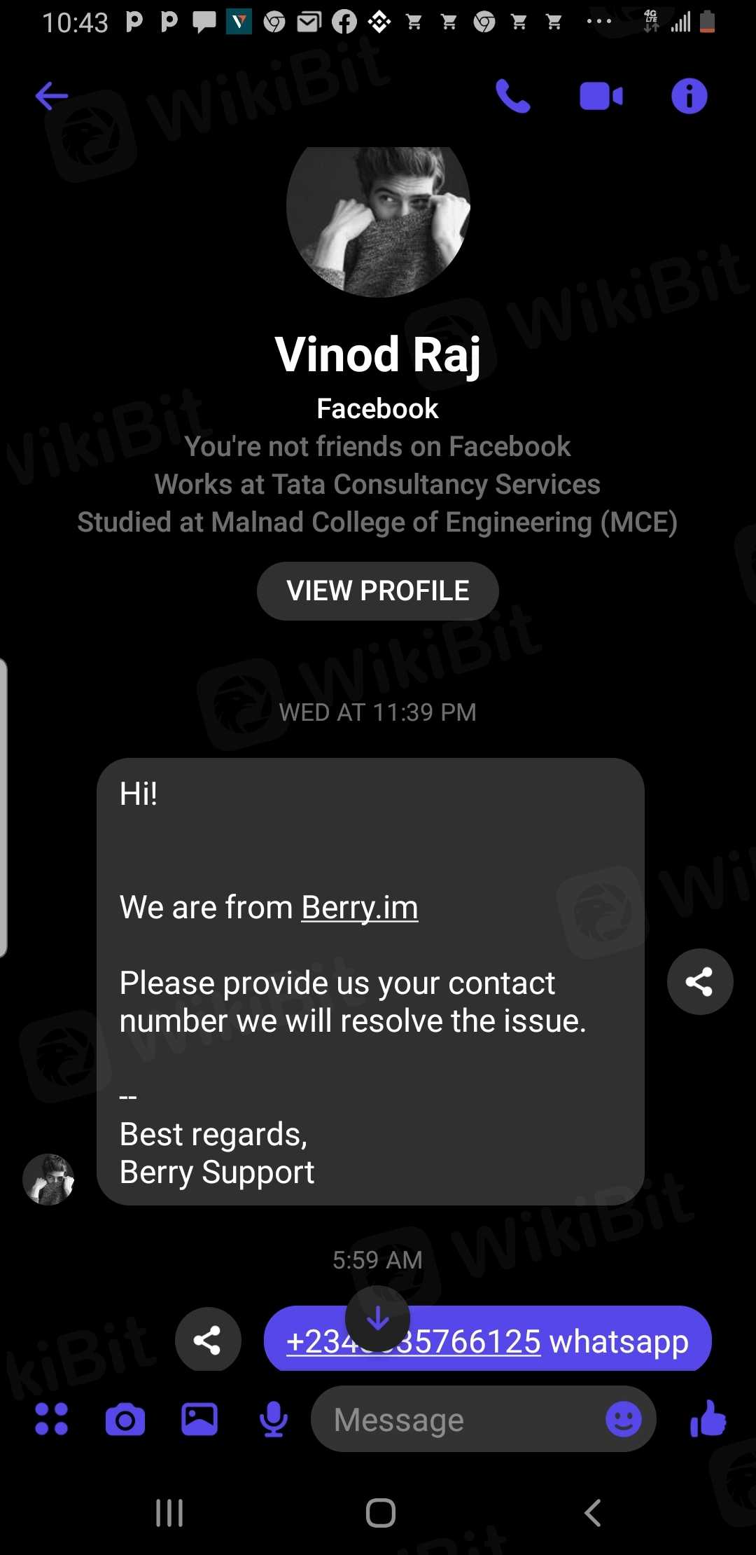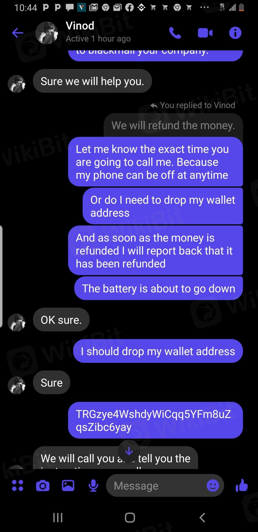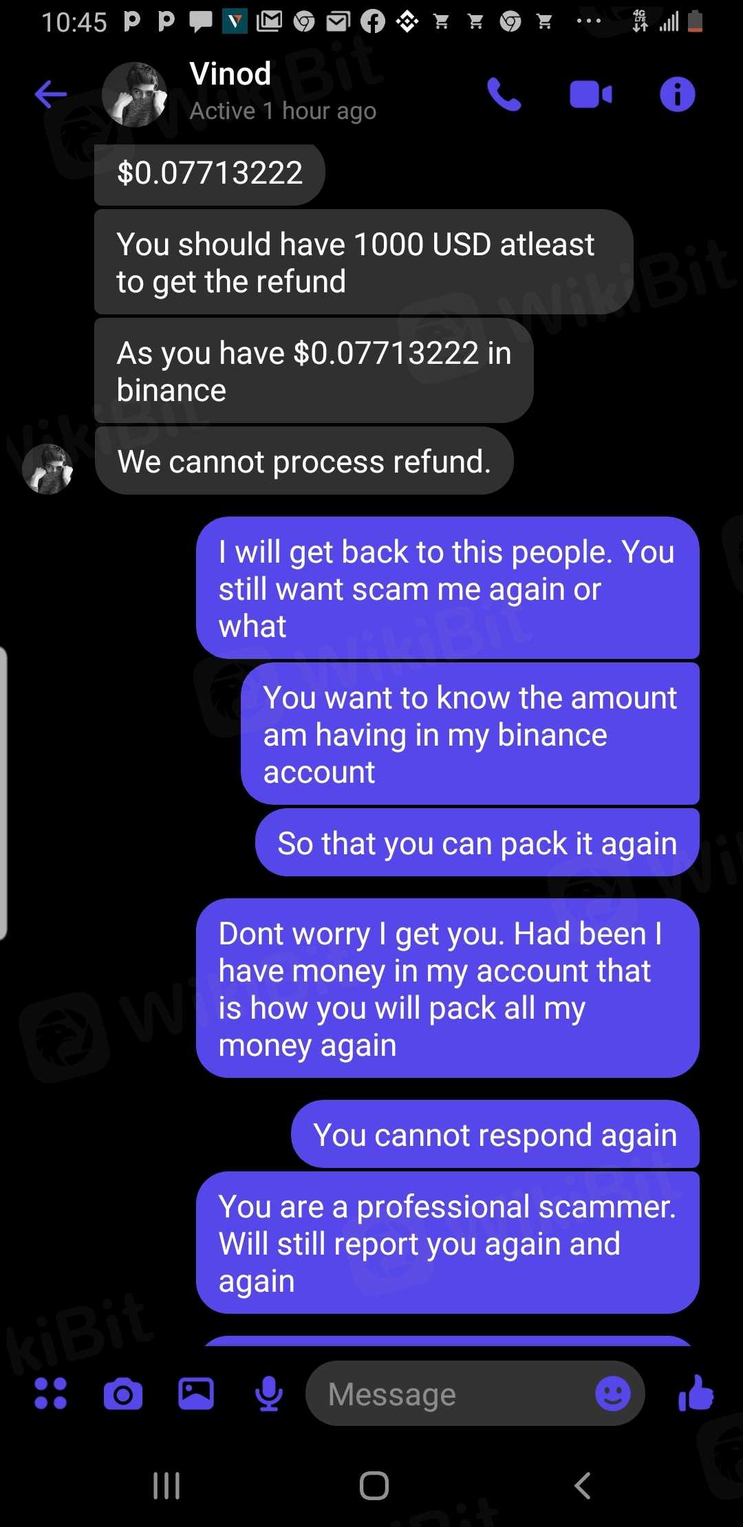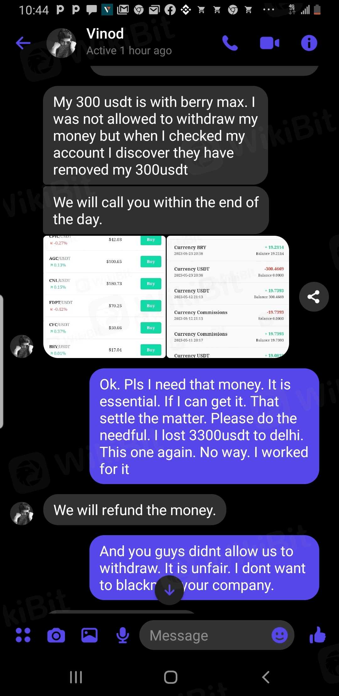 I reported berry earlier that they did not allow me to withdraw my money that my fund was locked. I received called from a man called VINOD RAJ early of today 1/6/2023 telling me what to do to retrieve my account. At the long run he said I must have up to 1000usdt before they can refund my 323usdt. He is making an attempt to scam me again. please help me