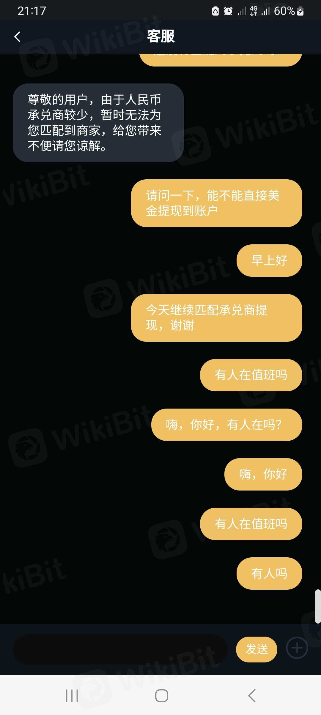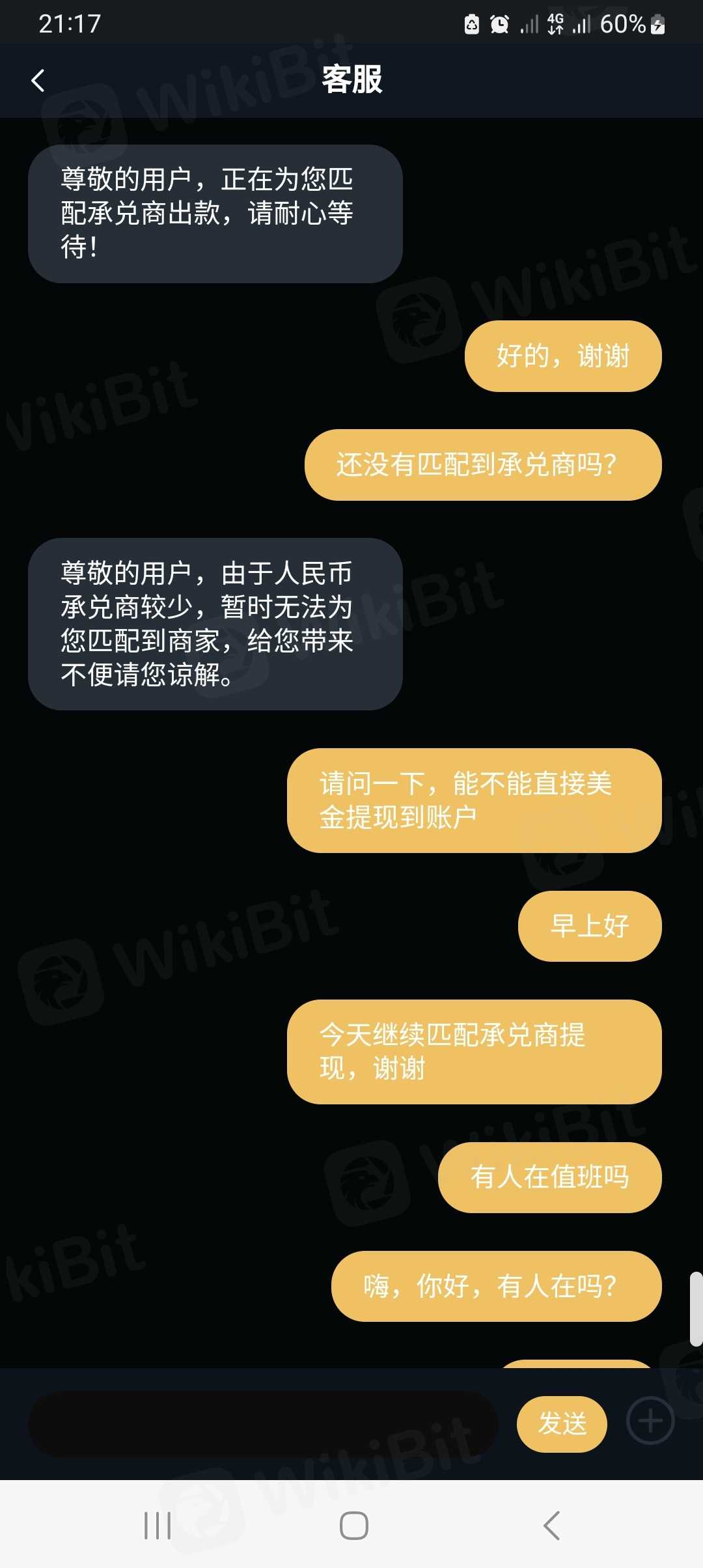 Hindi makapag-withdraw ng mga barya, ang serbisyo sa customer ay umiiwas, hindi nakipag-ugnayan sa mga tumatanggap. Nang maglaon, nawala ang staff ng customer service. Tumagal ng dalawang araw para suriin ang withdrawal gamit ang blockchain wallet, at hindi makontak ang customer service staff.