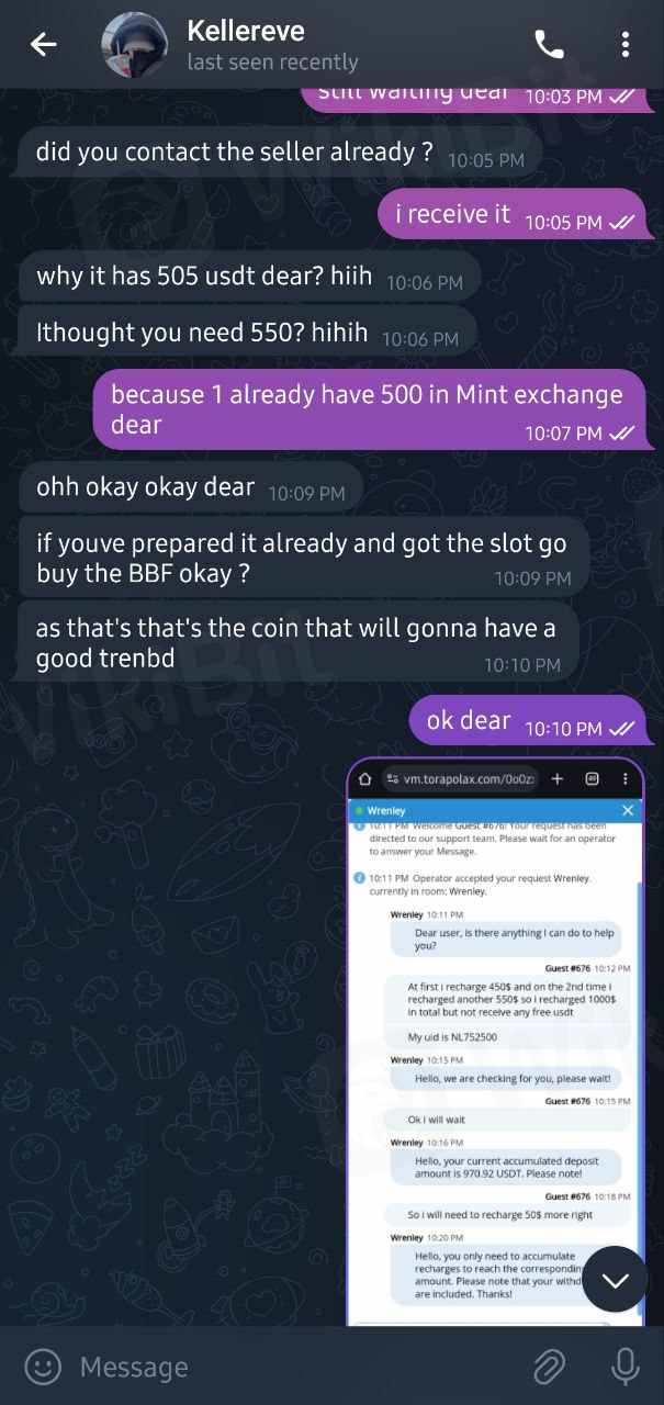 Ang scam na palitan na ito ay napakasophisticated, mayroong ***** sa isang dating app tulad ng Falo, bumble, tinder,... ay mag-aanyaya sa iyo na lumikha ng isang account sa Mint Exchange at pakinggan ang kanyang signal dahil sinabi niya na mayroon siyang isang koponan na sumusuporta sa kanya upang ipahiwatig ang signal. Sinabi niya na kalahating Hapones - Australyana siya at gusto lamang niyang gabayan ang biktima patungo sa Mint Exchange. Ang pangalan ng domain ng website na ito ay maaaring mag-iba (bestm.net, qp60.net,.....). Nakakuha ako ng ilang ebidensya habang ginagamit ang app.