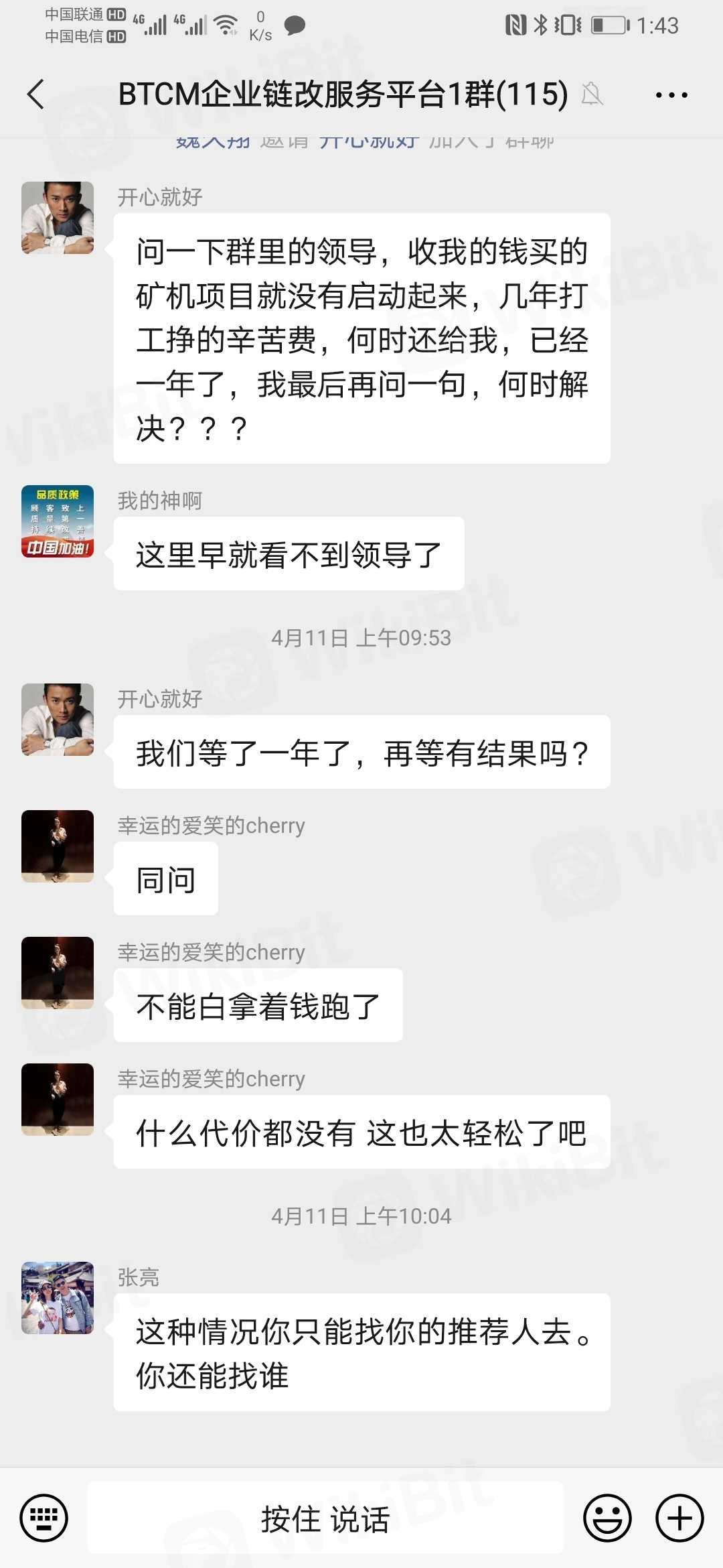 BTCM比特共识2020年10月上线,在之前几个月售卖出1万多台挖BTCM的虚拟,矿机上架后上了两个交易所,阿波罗交易所和BTCMAX交易所,然后项目方失踪。卷钱去矿金所买了几千T的FIL矿机,至今无音讯。币价已经归零,大家都准备集体报案