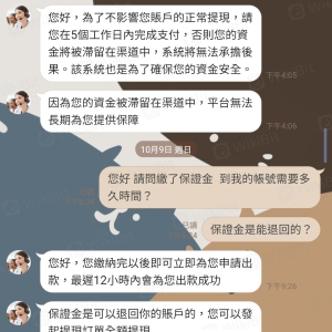 多次說要繳納個人所得稅,保證金不讓出款逾期並凍結