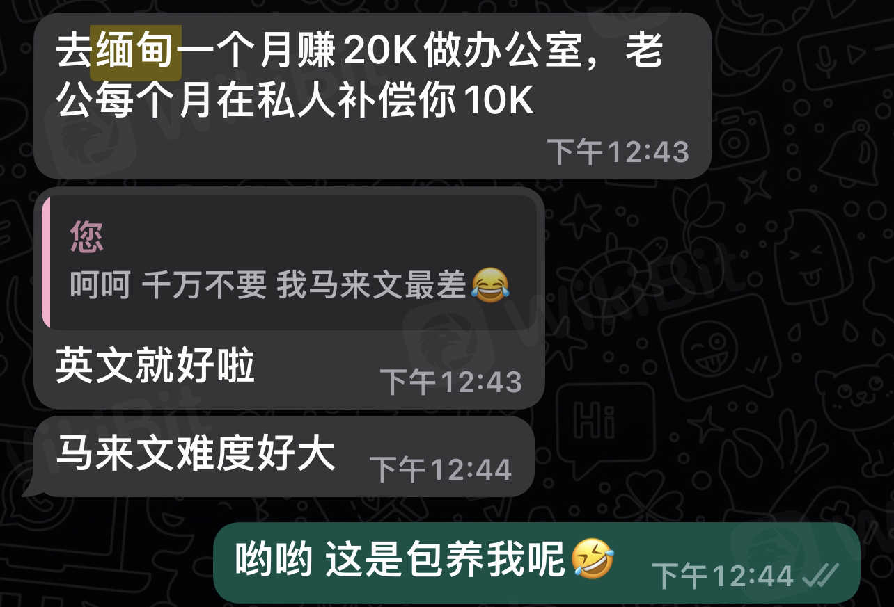 Yang disebut guru di sini sebenarnya adalah penipu. Anda bisa mendapatkan kembali uangnya jika Anda menginvestasikan sejumlah kecil uang di tahap awal, tetapi dia akan berpura-pura membantu Anda jika Anda menginvestasikan banyak uang nanti. Terakhir, saat waktunya tiba, Anda akan pergi ke Myanmar untuk bekerja.
