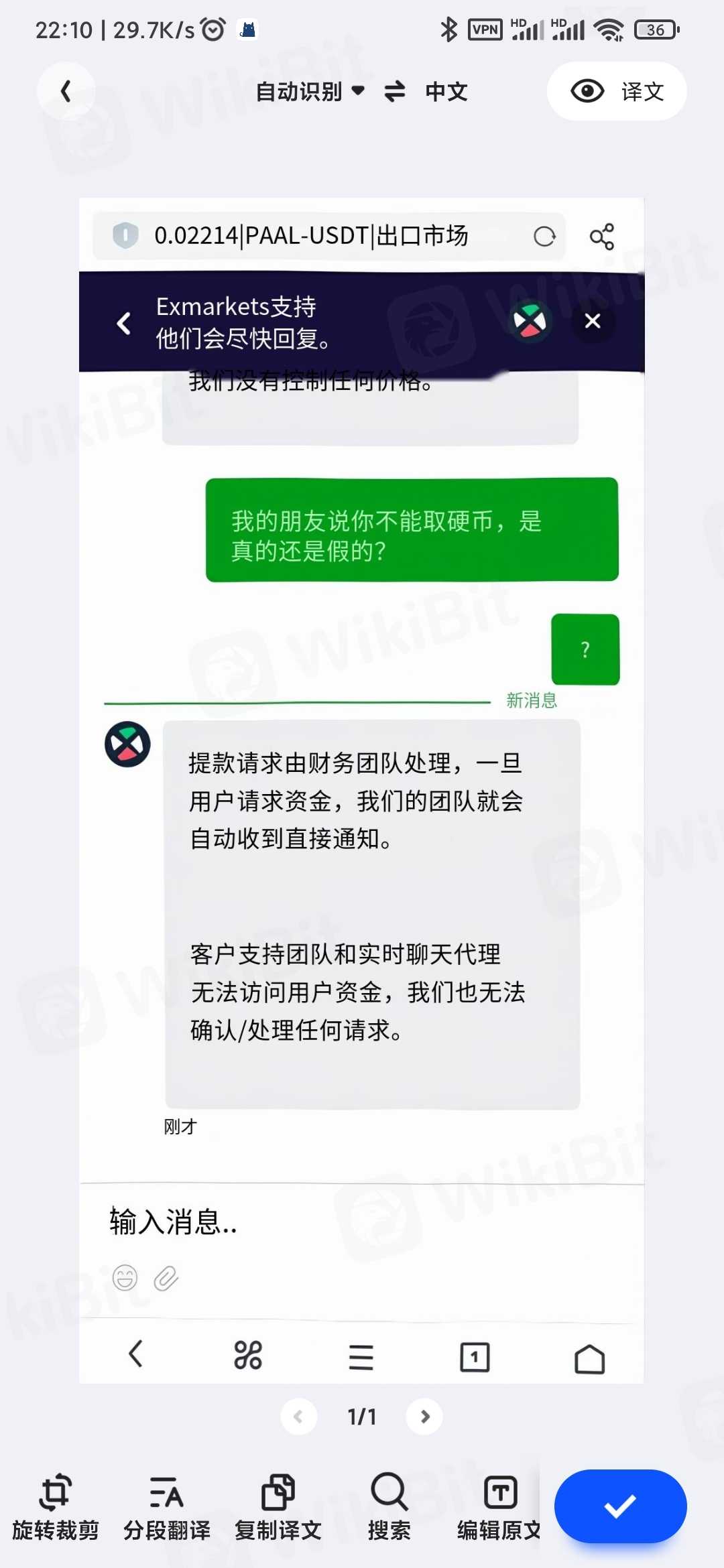 注意!这是个诈骗平台,我先是用100USDT尝试了下搬砖做差价,给我提币了,第二笔900USDT进去后,到现在快24小时了,一直不处理提币,这个账号联系客服也一直无人回复。然后我又换了几个邮箱注册然后联系客服,客服都是半小时左右内会回复