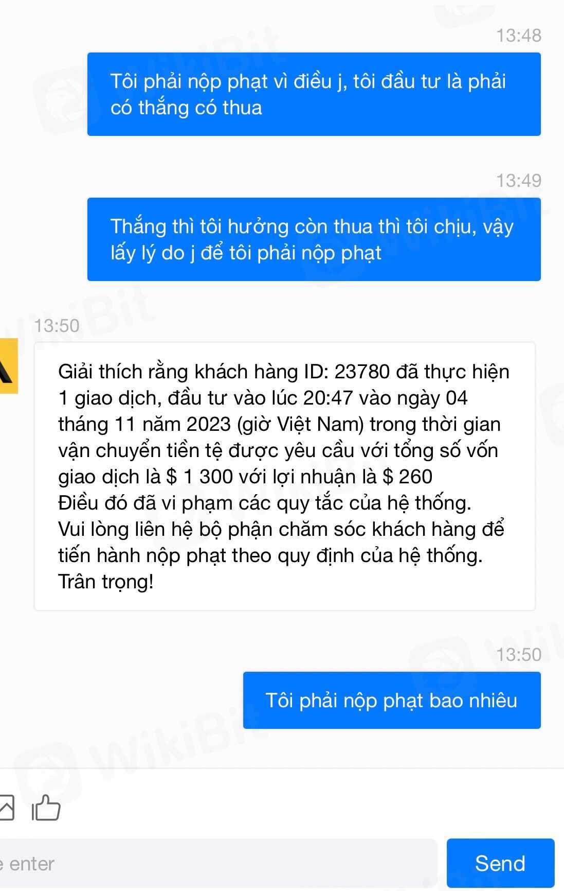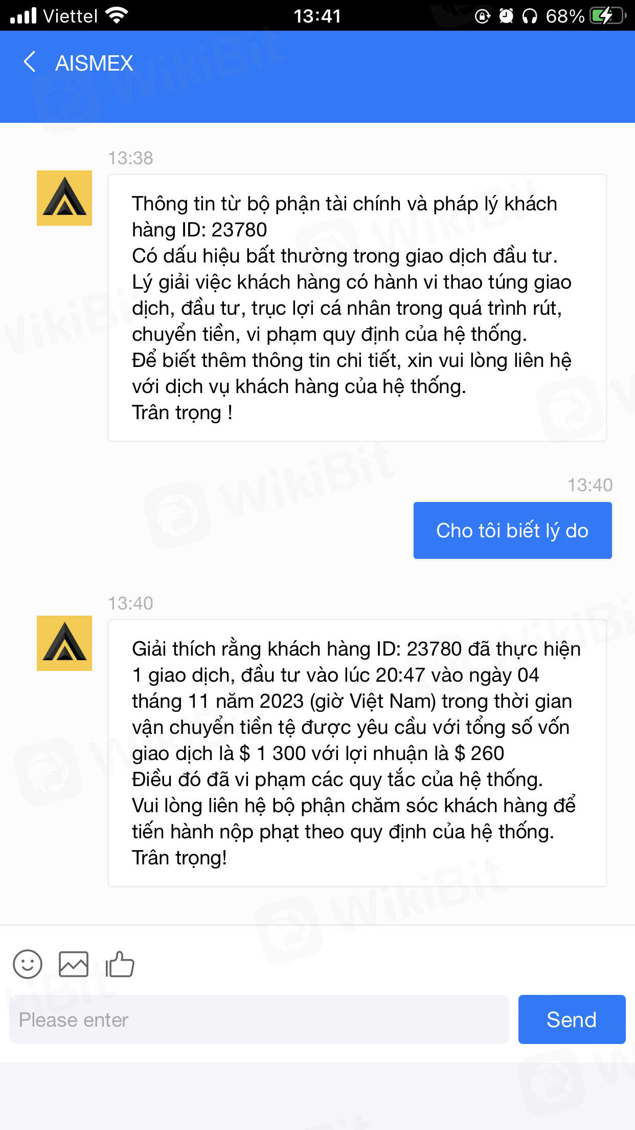 AISMEX là 1 sàn quá khốn nạn, muốn thao túng tiền của người chơi, tôi đầu tư vào thì rất nhan còn khi rút thì quá lâu với số tiền nhỏ nhưng khi rút số lớn thì lại báo thao túng thị trường, trục lợi cá nhân, cái con mẹ nó nạp vào gần 80tr chơi ăn được có mấy tr đến lúc rút ra nó nói vậy . còn bắt đóng phạt 24tr k đóng phạt trong 24h nó khoá tài khoản, cái LM đúng là đỉnh cao của sự khốn nạn ae tránh xa cái sàn lừa đảo này ra