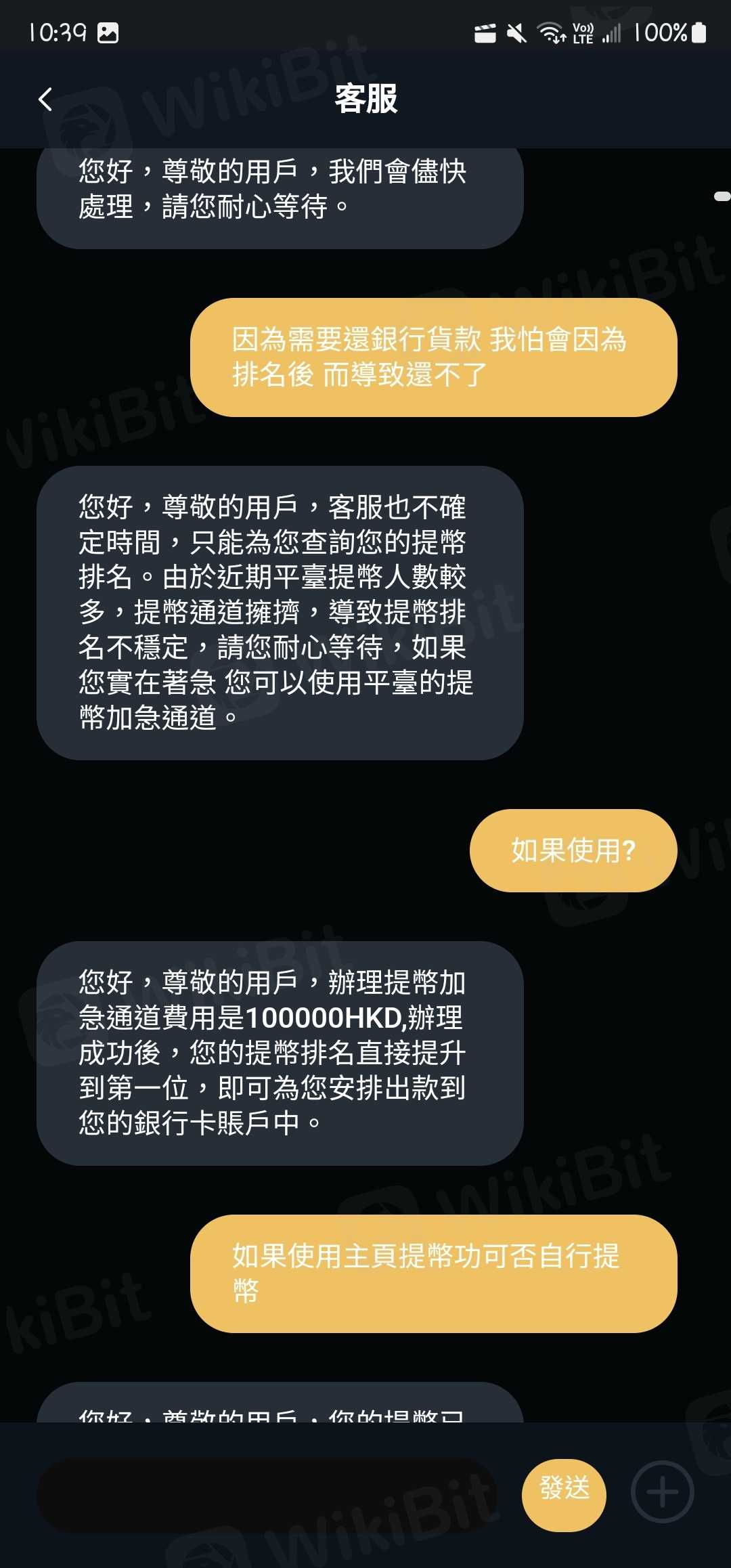再說如果想盡快提現還要給100000HKD去開通VIP。誰知現在客服多次使用系統維護同升級 不回覆我的查詢 想盡辦法令我不能夠提現