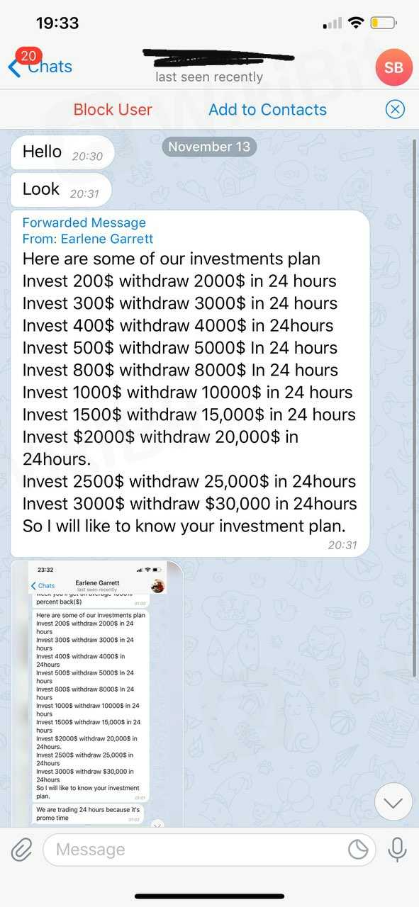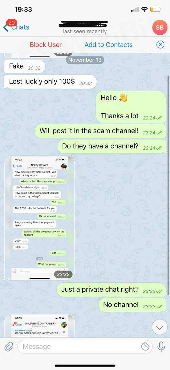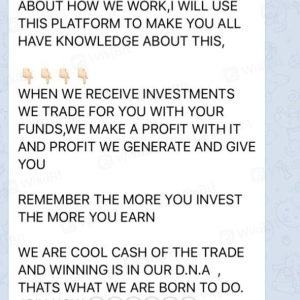 オンラインビットコイントレーダー-偽の投資パッケージ。あなたが投資の支払いをした後、彼らはあなたに支払いをしません。言い訳をして、さらなる移籍を求め続けてください。私の友人は600ドルの見返りに300ドルを投資しますが、すぐに彼は詐欺師がいることを知ったお金の預け入れを終えます。被害者にならないように彼らから離れてください。彼らと一緒に投資しないでください彼らは1つの巨大な詐欺です!あなたはあなたのお金を失うでしょう!