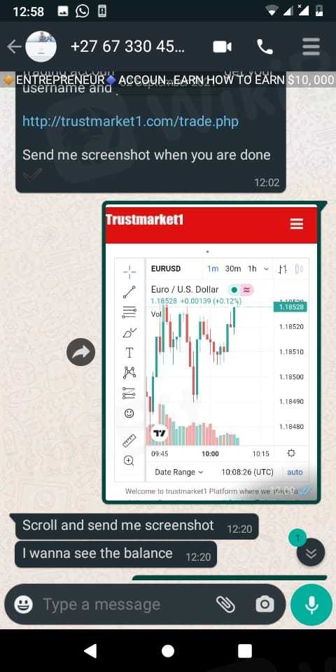 私はレイモンドジェームスというトレーダーからTrustmarket1に紹介され、興味を持ちました。この人に初めて会ったので、1kから始めることにしました。それで、2日以内に引き出しができると言われました。 Trustmarket1アカウントを開設するためのリンクが与えられ、それを行った後、取引を開始しました。翌日の朝、私は知らされなかった引き出しを行うためにR5500を支払う必要があるというメッセージを受け取りました。