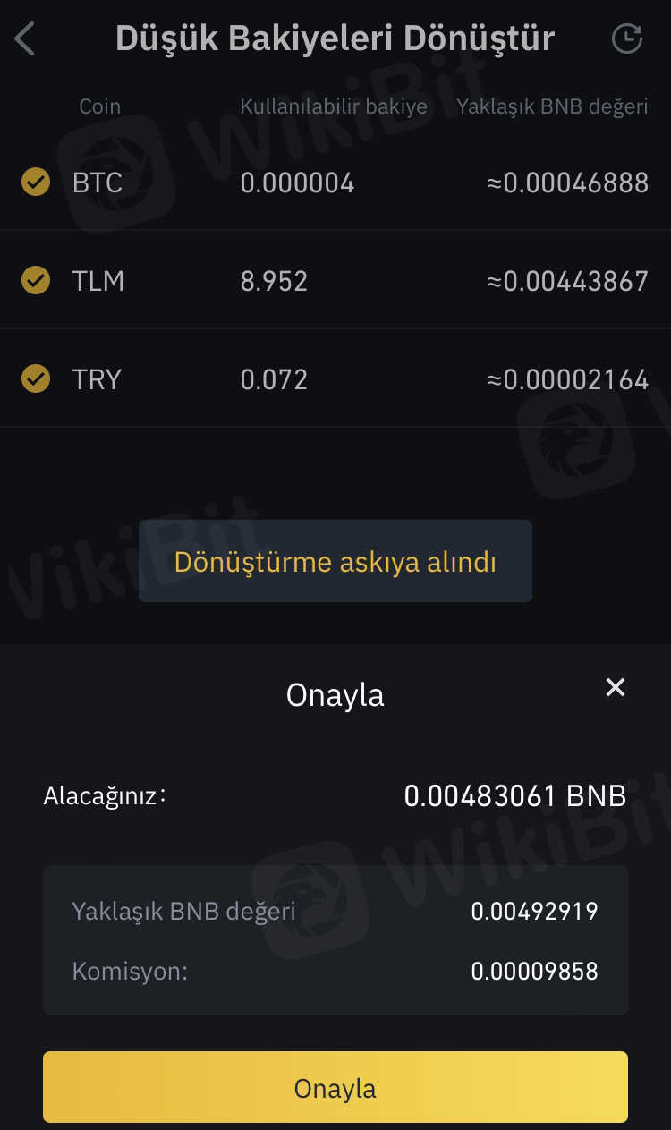 küçük bakiyeleri bnb’ye dönüştürme hatası