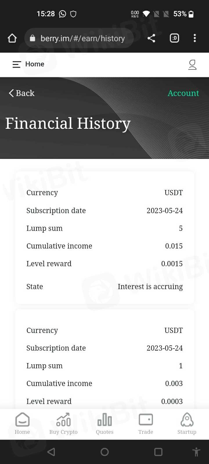 Berry has been running scam's! people could not withdraw up until they upgraded or downgraded to Berry Max people have been made to activate their Berry accounts to Berry Max by depositing a 50USDT. Withdrawas was announced that it would operate normally on Berry Max as of the 23 May 2023. The date has passed but no one is able to withdraw any longer. I have invested over 300€ and all the funds are gone the account is empty.