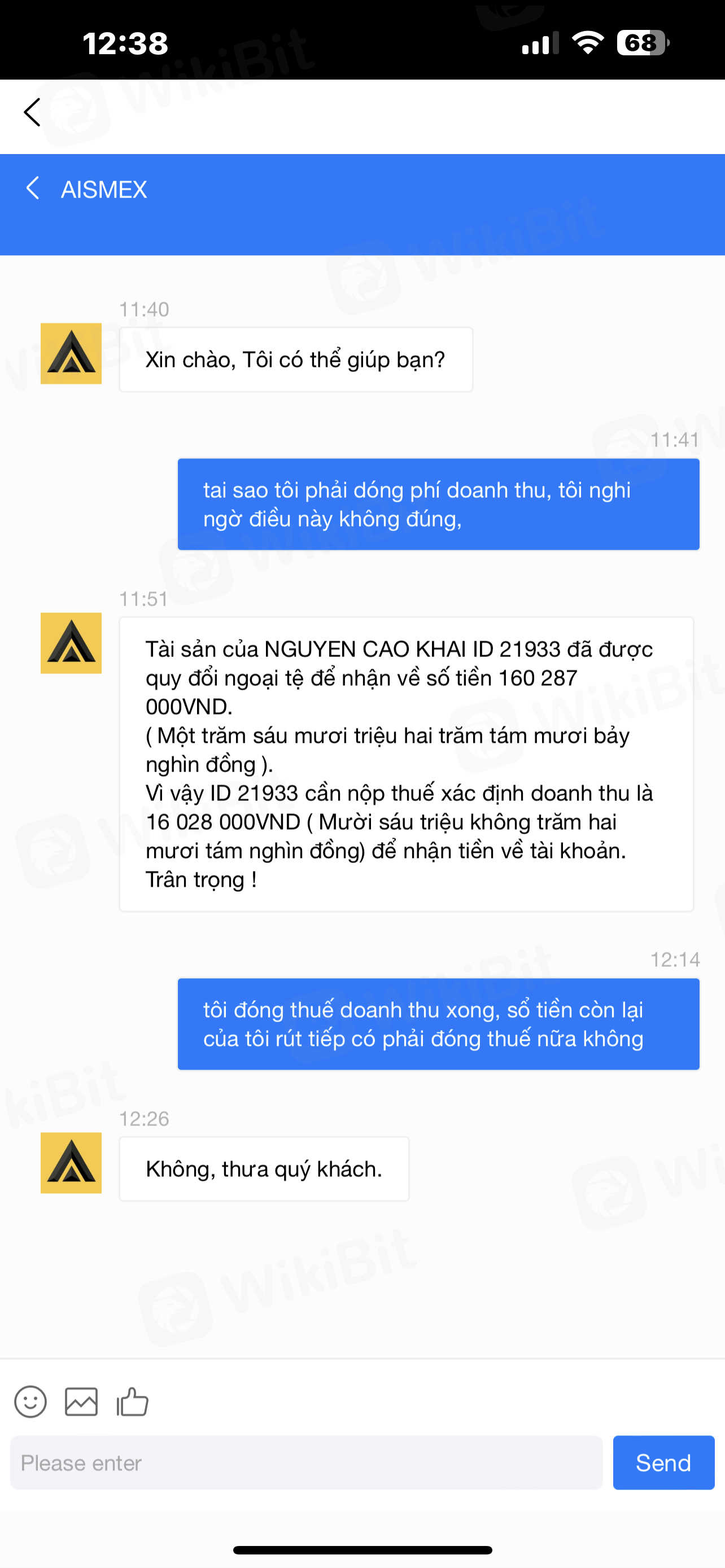 tôi đã giao dich trên sàn aismex đến khi tôi rút tiền thi bộ phận cskh yêu cầu tôi đóng rất nhiều loại phí và thuế mặc dù tôi đã đóng tất cả các phi và thuế do cskh yêu cầu nhưng tôi vân không rút được tiền của minh, tôi nghi ngờ sàn aismex, có dấu hiệu lừa đảo,