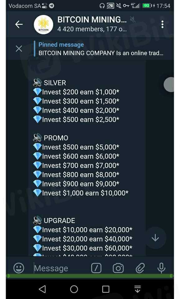 Be aware of this group on Telegram (bitcoin mining) the promising people to grow money if I invest with then after you deposited many telegram scammers