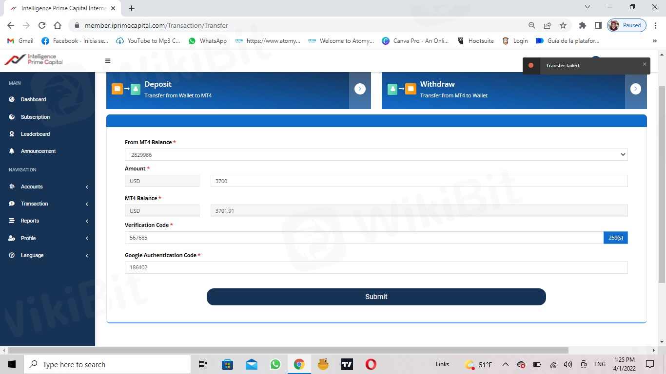 For more than two months I have tried to withdraw the money and it has been impossible, the company does not respond to the messages and every time an m information I demand the reintegrated integral d emi money. I have made several complaints on wikifx and they have not given me an answer to my case. I withdraw my money was rejected and the amount in my mt4 appeared at 0.when the announcement appeared that they stopped operating in my country it was 3 days after the deadline that they indicated