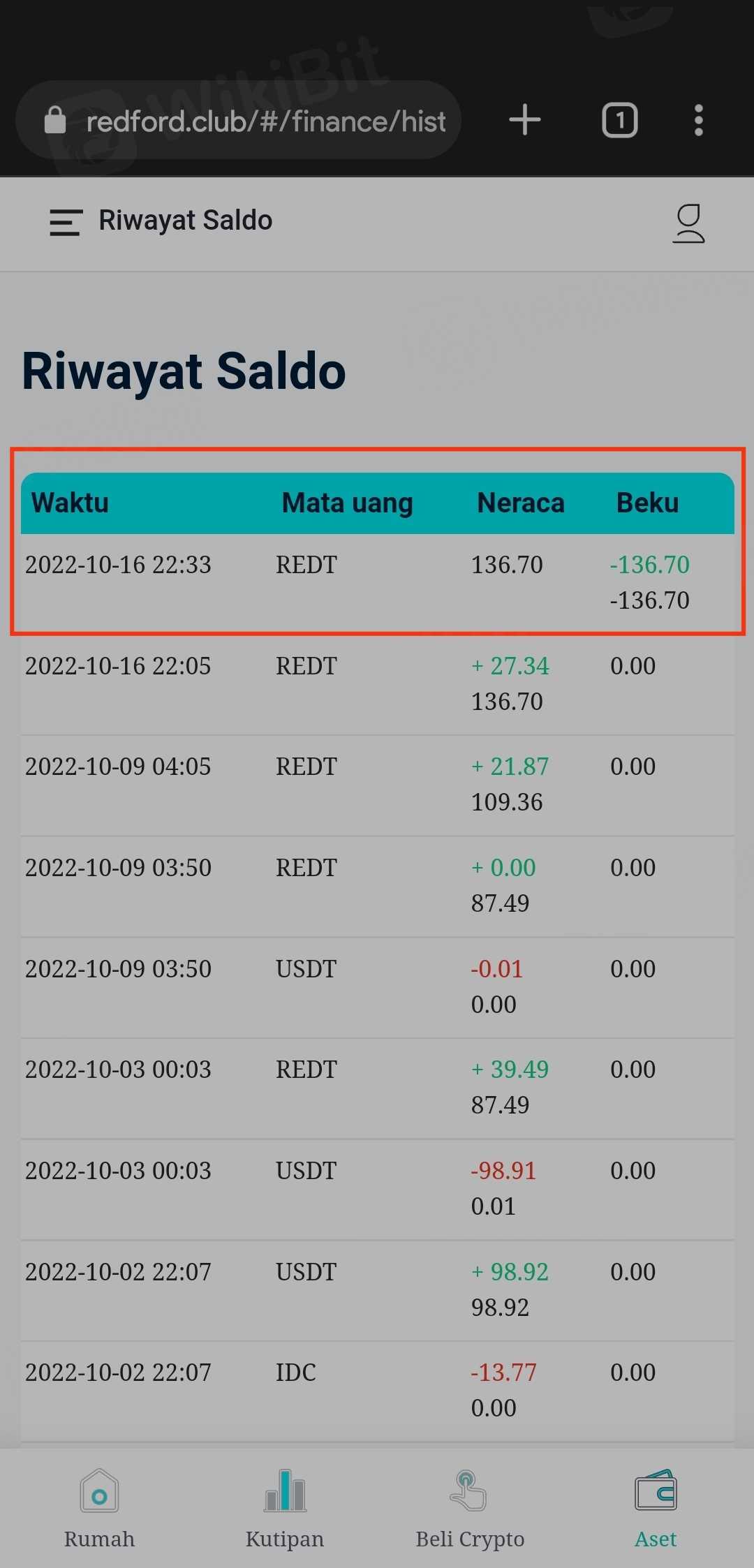 • Koin beku REDT
