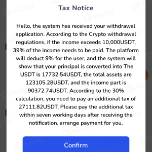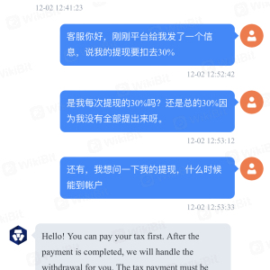 以前我每次提现都是几分钟就到我的Coinbase 钱包了,现在我提现,平台就不让我提,要我交30%的税才能提现,我也跟他的客服说了,你可以从我提现的里面扣去30%他说不行必须要先交30%才能体现,这一点我不敢相信,我是怕交了30%到最后还是提不出来,我也不知道该怎么办