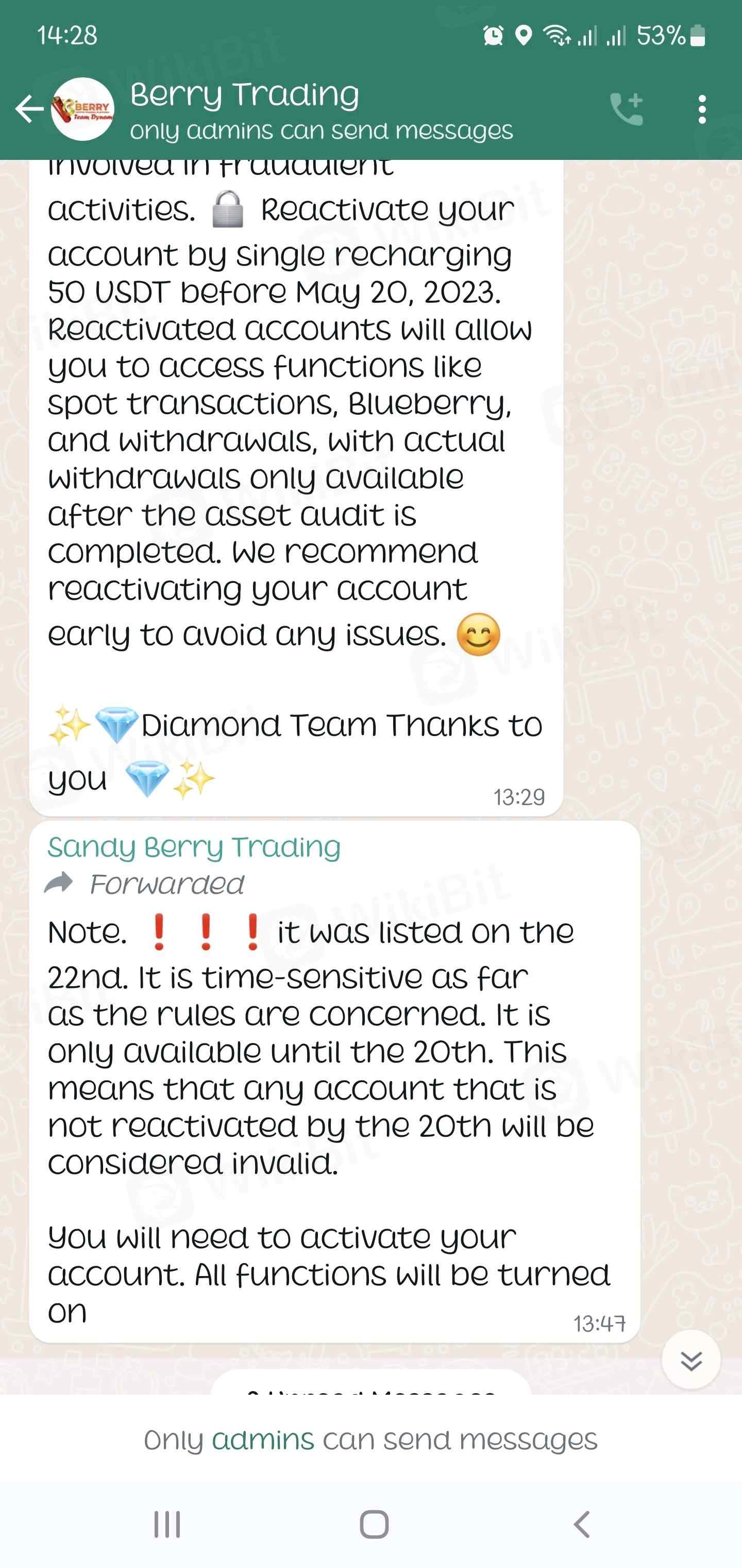 berry notified us they are merging. withdrawals will be frozen until 22 May 23. got a notice today stating all accounts will be frozen. everyone should pay reactivation fees before 20 May 23 otherwise we will loose our money invested.