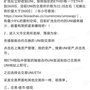 利用各种钱包,包括imtoken 等,让用户在各大交易所购买ETH最少0.1或者0.3个,发到指定的合约矿池地址,然后你的钱包就会收到1:126相应的uniswsp假代币,他们会冒充xxx客服说,你可以在各大交易所卖掉套利,实际上骗子是利用高利润欺骗不懂区块链的新人,这些假代币在钱包是可以看到你的总价格,但是当你发送或者兑换的时候,完全不能兑换,即便你发送到各大交易所智能合约无法识别就会退回来。请大家一定要警惕,牛市来了一定要拿好手中的币。