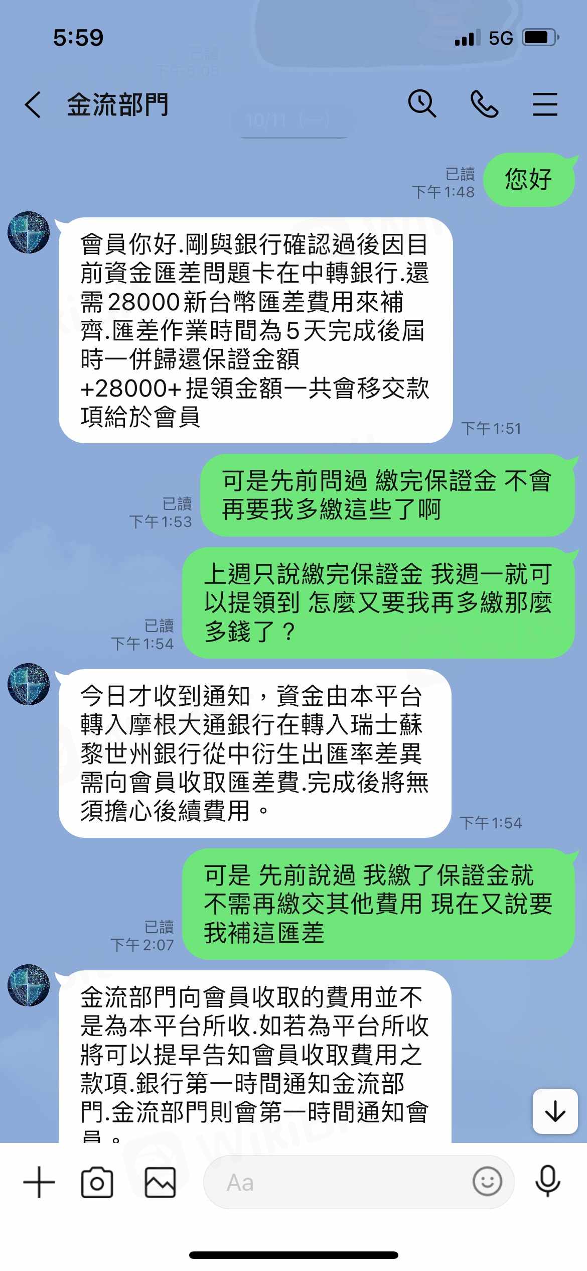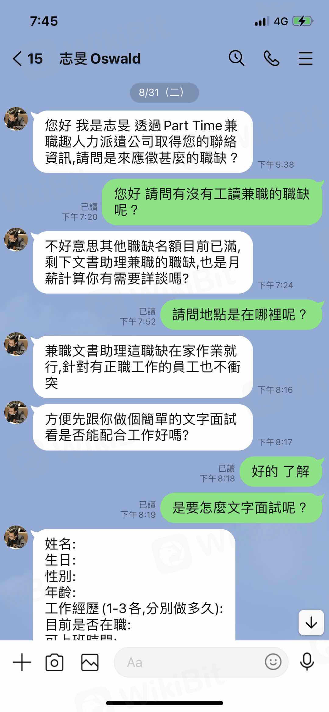 首先會有人透過人力銀行來聯繫你,對方稱要找助理,會跟進行簡單的面試,確定後給一個專員的聯繫方式,讓你跟專員聯繫,之後他會給你一個貨幣平台的網址及帳號密碼,讓你登入後跟專員聯繫,專員會帶你操作,操作三天後會找各種理由跟喊停這項工作,之後會跟你說幫你跟專員爭取一個名額,讓你自己註冊一個帳號帶你操作,專員會告知,前三次的操作都是信任配合的操作,要你前三次的操作都先把帳密交給對方,第一次操作後會讓你看到獲利,會要你先支付5成的獲利,才把帳號還你,讓你進行提領,等第一次提領時,平台客服會告知已經出金,但都收不到錢,再次詢問,客服會告知因為帳號資料填寫錯誤,金額匯錯其他帳戶,要等金流部門追回,幾天之後會告知金流還未追回,但為了維護會員權益,會先把匯錯的金額還給會員,把金額匯回平台上的帳戶,第一次提領後,專員會開始第二次的操作,這時候你就無法登入提領,會被告知需要再繳第二次的獲利,才會把帳號還你,等到第二次申請提領,就會被告知,因提領金額太大,需要繳保證金進行平倉,需要5天的時間,5天後又會告知因匯差問題,會員需要再次繳費,需要5天的作業時間,會告知日期,但等到當天,客服及金流部門就會把你封鎖了!!