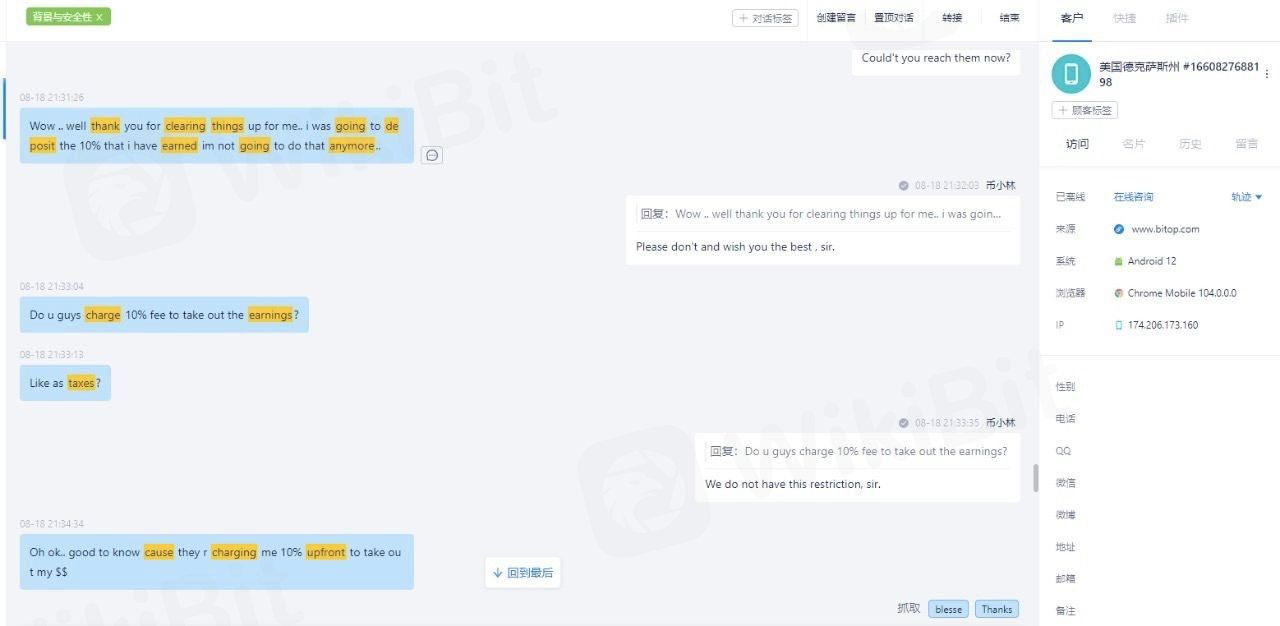 Я зарегистрировался здесь и был обманут. Затем я нашел официальный сайт Bitop, но не могу войти. Я обнаружил, что это поддельная биржа! Все три тезисы — это подделка битоп-биржи с хорошей работой. Они не позволяют мне снимать после получения прибыли. Они просят меня внести 10% от общей суммы за комиссию за вывод средств. Это чистой воды мошенничество. Сайт подделки: https://bitopit.com/cn/ https://maowubcd.com/ https://bitop.services/?fbclid=IwAR3xmWApVGxbBNgksjNSS2YlMXszi_HMsOTXR2Efka8G15_8R025a2pyFXA https://bitsups.com/h5/?utm_source=tokenpocket#/pages /общий/регистр?код=qc1z