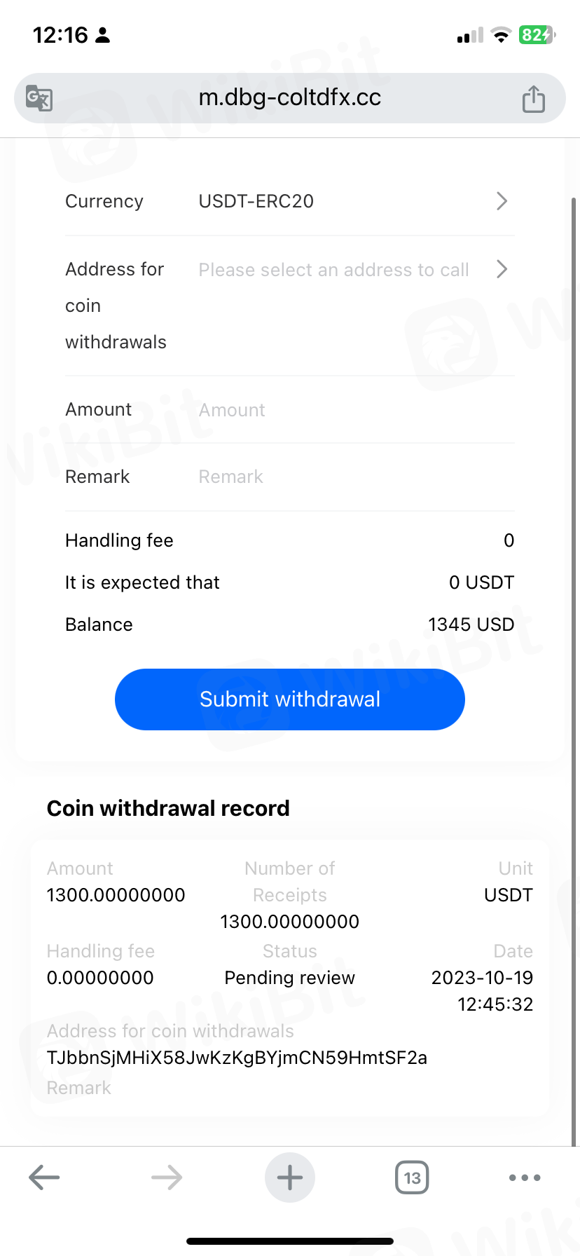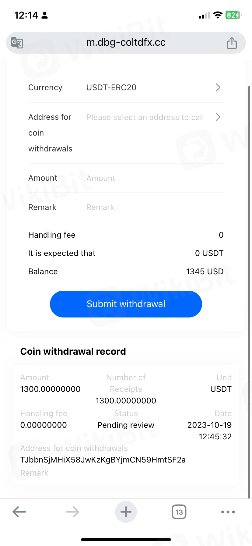 The withdrawal record of my account with the site address https://m.dbg-coltdfx.cc at DBG, the company that defrauded me. Please pay attention to the account screenshot and the time and date showing that it did not send my money. I haven't been able to transfer my money for three months. This means I cannot withdraw my money. This DBG company is a scam, be careful and the open site addresses are https://m.dbg-coltdfx.cc. Do not lose your money to these scammers.