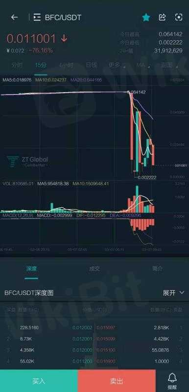 3.7号早上,BFC价格出现了90%左右的跌幅震荡,当天有回调站稳,第二天继续暴跌,然后3.8号平台暂停了BFC 的交易。说是项目发做市失误。以下是几张当时的交易价格截图。可对于我们跌下来购买并且持有的客户,什么都没有。截止4.13号,交易已经暂停一个月了。对于我们来说,在这种大牛市下,损失这么严重,是非常不开心的。平台有不可推荐的责任,理由如下: