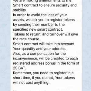 คำเตือน: มีกลุ่มหนึ่งชื่อ Basic Attention Token ในการหลอกลวงทางโทรเลขโดยระบุว่า Bat ได้สร้าง BAT smart contract ใหม่และคุณจำเป็นต้องส่ง BAT ไปยังที่อยู่เพื่อรักษาความปลอดภัย BAT ของคุณ นี่ไม่ใช่ของจริง อย่าส่งสิ่งใดไปยังที่อยู่นี้ เพราะฉันส่ง Bat ไปแล้ว แต่ไม่มีอะไรเปลี่ยนแปลงในบัญชีของฉัน โปรดใช้ความระมัดระวังและตรวจสอบอีกครั้งว่าคุณอยู่ในช่องใด หากคุณได้รับข้อความหลอกลวงนี้หรือเป็นส่วนหนึ่งของกลุ่ม Telegram หลอกลวงนี้ โปรดรายงานช่อง..