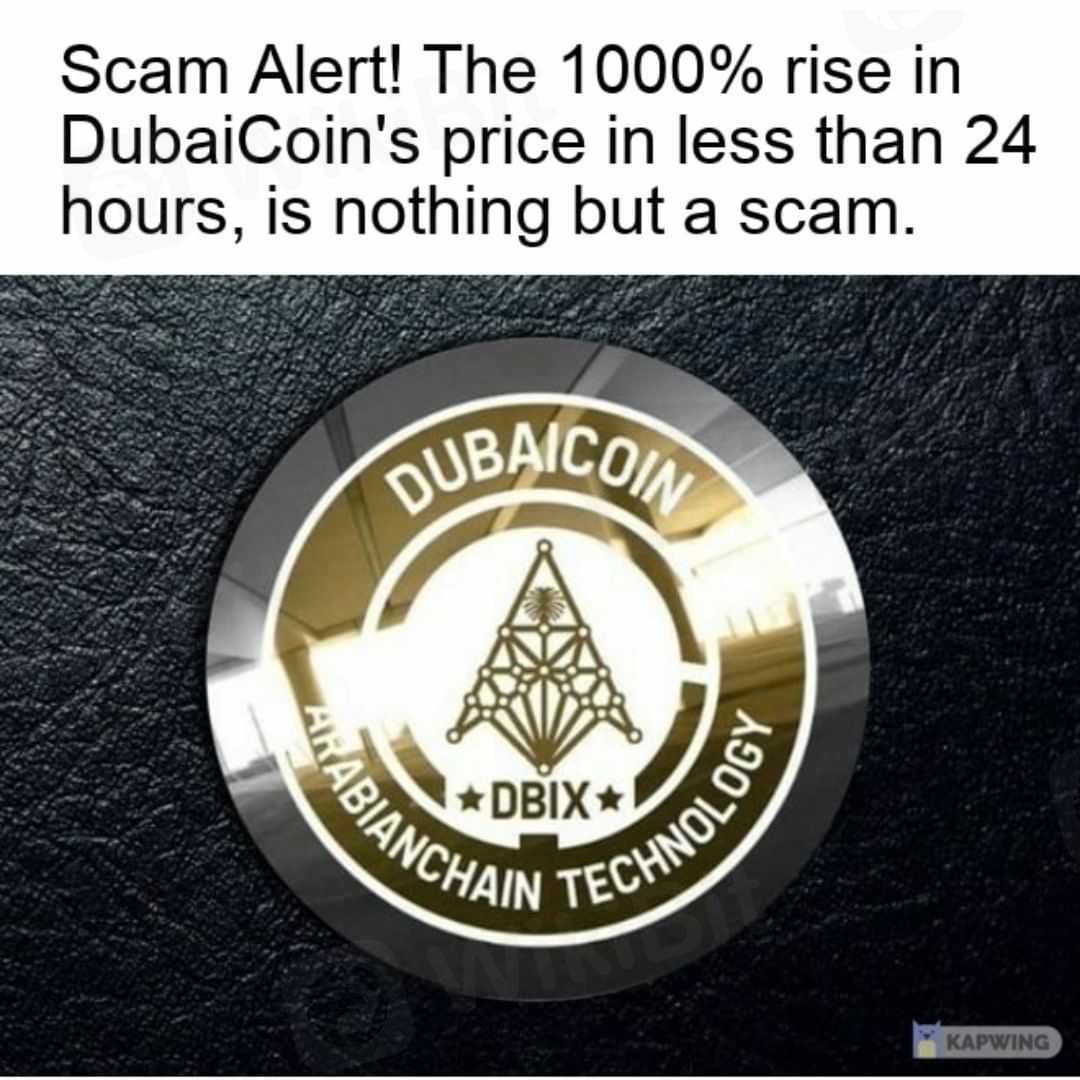 มีรายงานว่าคริปโตเคอเรนซีชื่อ DubaiCoin (DBIX) กระโดดได้ 1000% เปอร์เซ็นต์ใน 24 ชั่วโมง แต่รัฐบาลดูไบได้เตือนนักลงทุนเกี่ยวกับเหรียญดิจิทัลนี้ และกล่าวว่ามันไม่ใช่แค่การหลอกลวงเท่านั้น ราคาของ DubaiCoins พุ่งสูงขึ้นหลังจากการแถลงข่าวยืนยันว่าเหรียญนี้มีชื่อว่าสกุลเงินดิจิทัลอย่างเป็นทางการของดูไบ ดังนั้นการลงทุนทั้งหมดในโทเค็นนี้จึงสูญเสียผลกำไรของพวกเขาไปจากโครงการดังกล่าว
