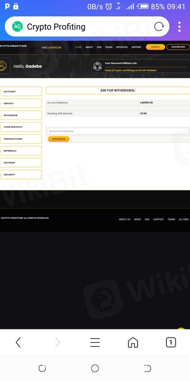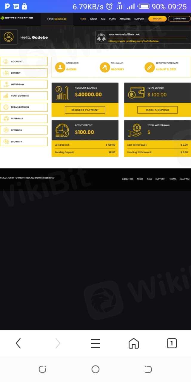 I was contacted by a guy called Jeff from CRYPTO PROFITING .COM about investing in their company a summer of R2000 for 2days with the returns of R5000 +4000 he guided me to open a luno wallet to make a deposit of R2000 which i did n after he sent me a link for the company to register n open an account n ask me to transfer the money from my luno to their company'saddress which I did then he started the trade after 2days my dashboard reflected $40000 as my profit.