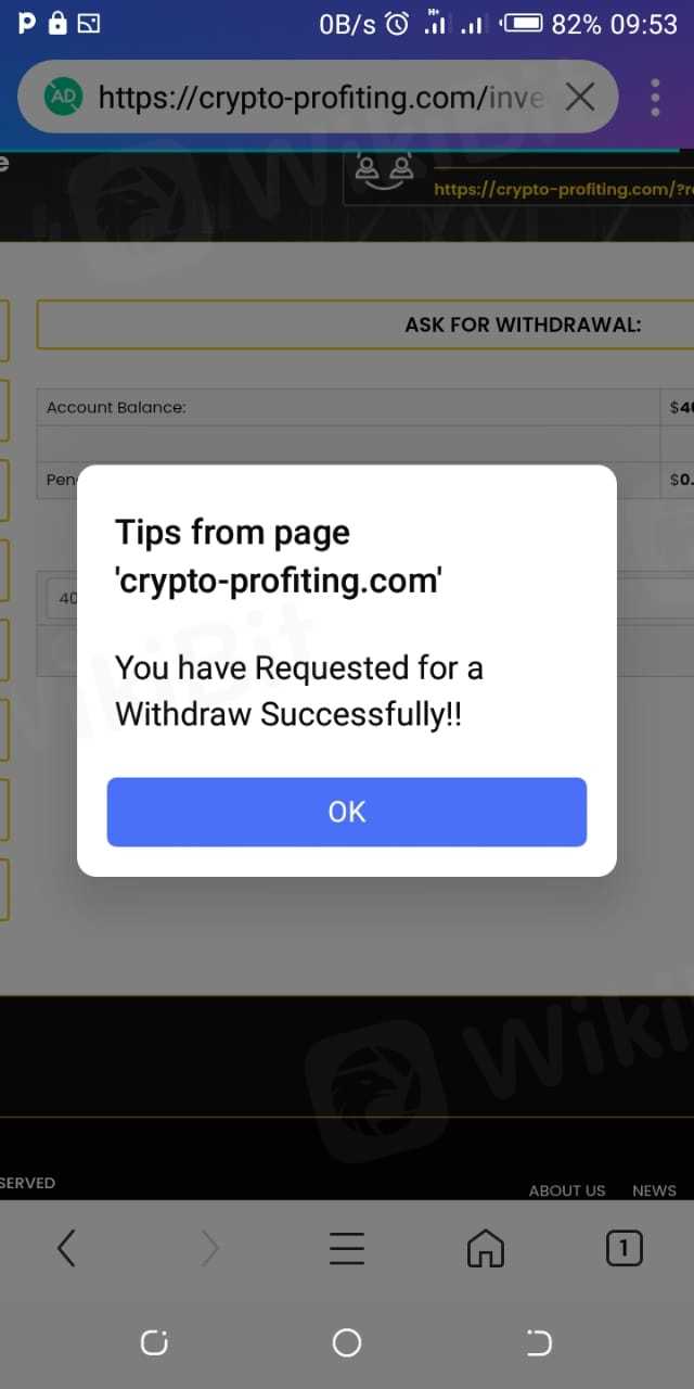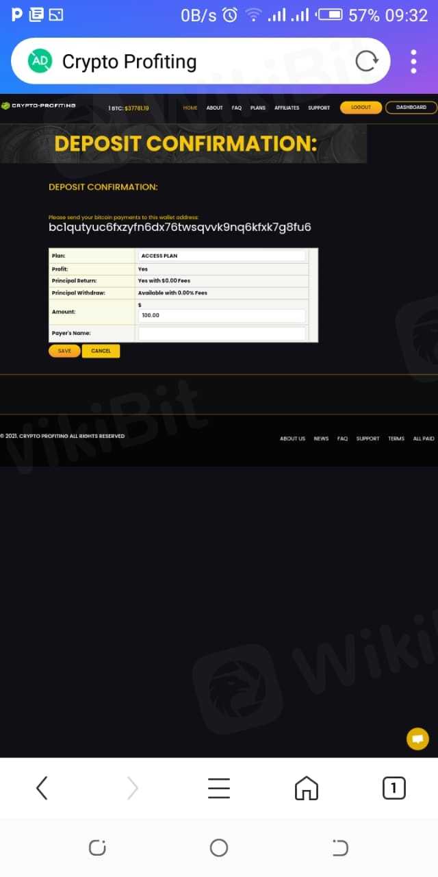 ฉันได้รับการติดต่อจากผู้ชายที่ชื่อ Jeff จาก CRYPTO PROFITING .COM เกี่ยวกับการลงทุนในบริษัทของพวกเขาในช่วงซัมเมอร์ที่ R2000 เป็นเวลา 2 วัน ด้วยผลตอบแทน R5000 +4000 เขาแนะนำให้ฉันเปิดกระเป๋าเงิน luno เพื่อทำการฝากเงินจำนวน R2000 ซึ่งฉันทำหลังจากนั้น เขาส่งลิงค์ให้บริษัทลงทะเบียนและเปิดบัญชีและขอให้ฉันโอนเงินจาก luno ของฉันไปยังที่อยู่ของบริษัทซึ่งฉันทำ จากนั้นเขาก็เริ่มการซื้อขายหลังจาก 2 วันแดชบอร์ดของฉันสะท้อนถึง $40000 เป็นกำไรของฉัน