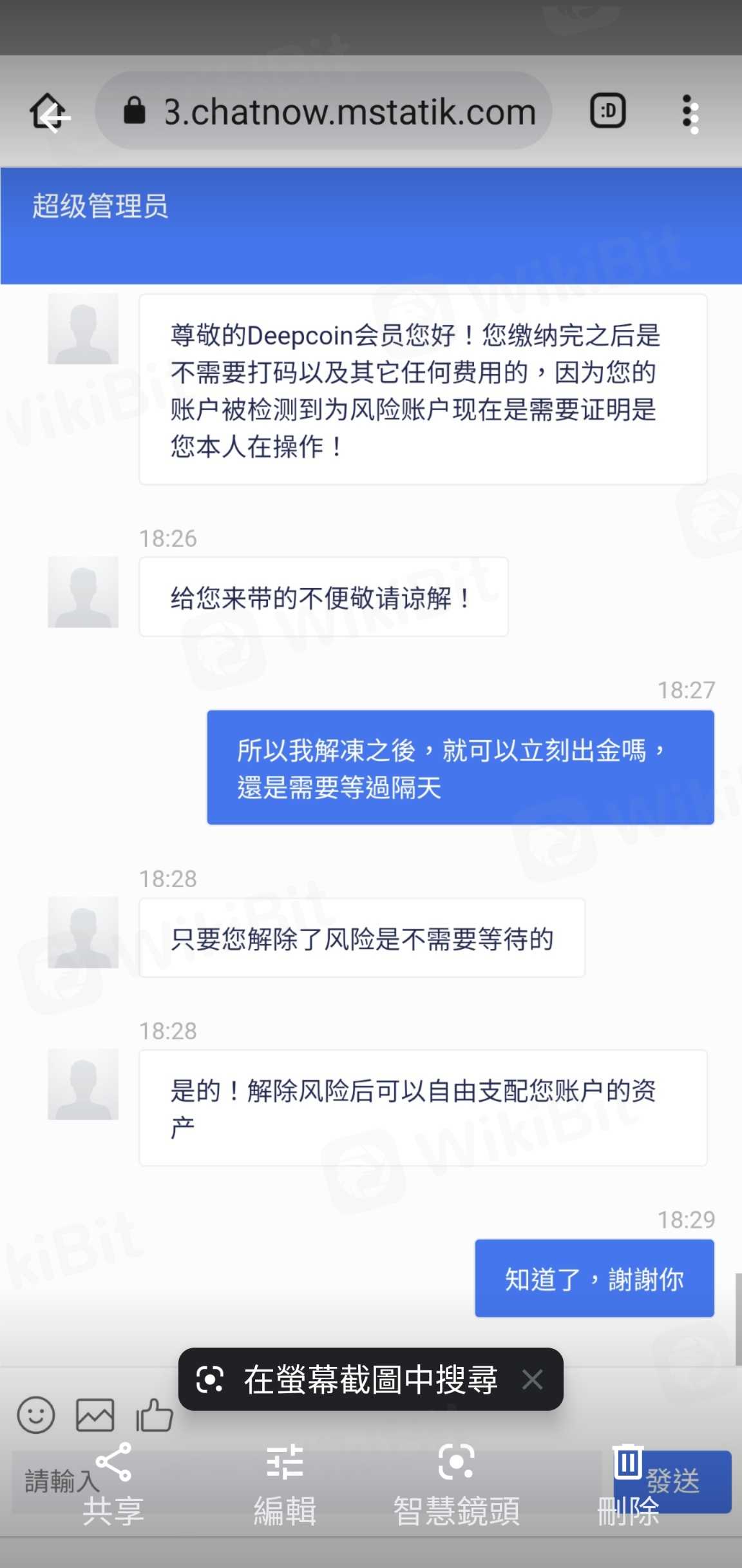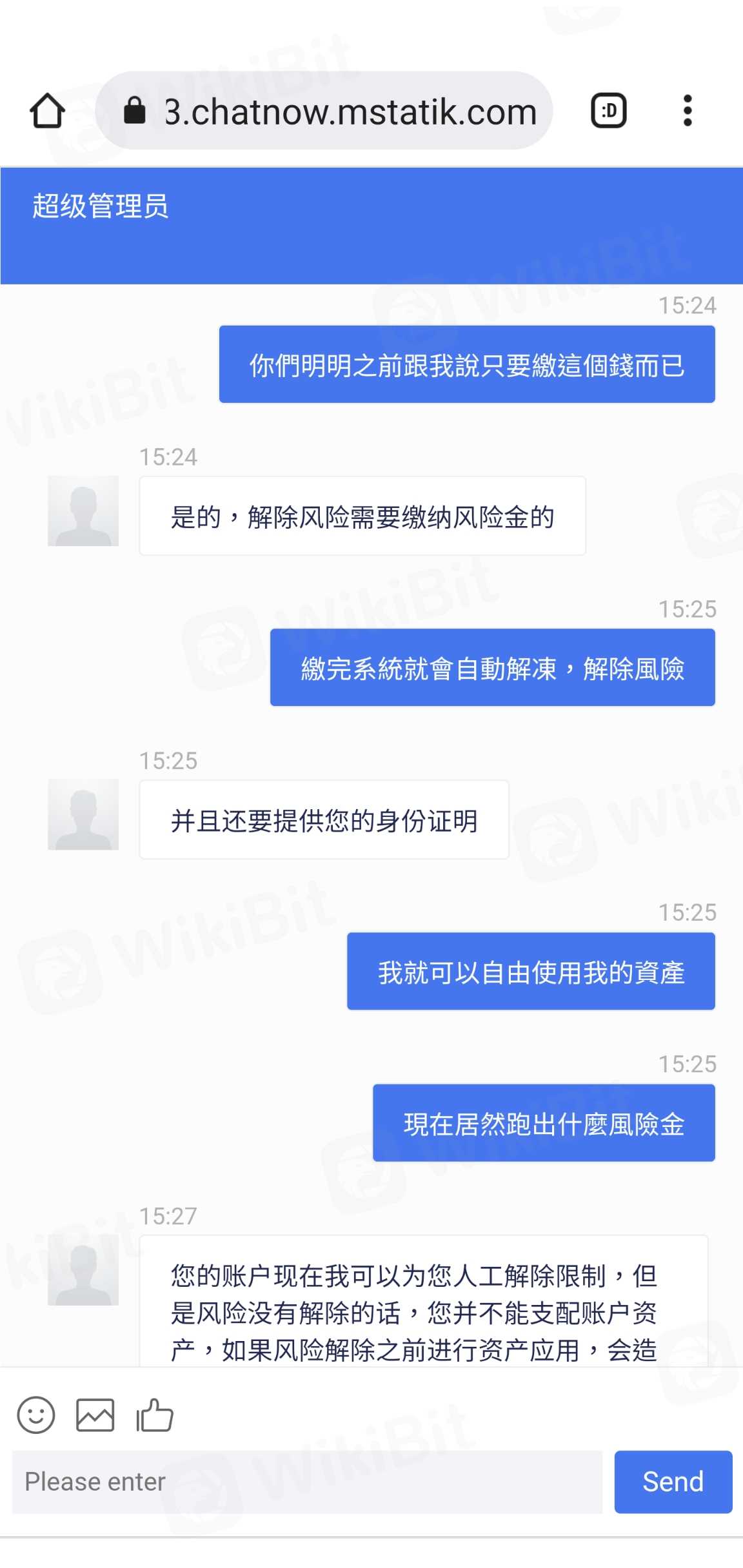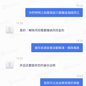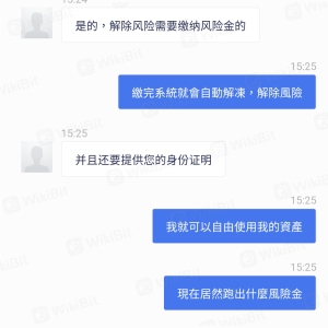 นี่คือแพลตฟอร์มสีดำปลอม สำหรับการถอนต้องมีใบแจ้งยอดบัญชี 2 เท่าของสินทรัพย์ทั้งหมด หลังจากนั้นก็บอกว่าต้องเสียภาษี 28% ของภาษีของสินทรัพย์ จากนั้นบอกว่าถูกระงับ และ 20% ของค่าธรรมเนียมการยกเลิกการตรึงสินทรัพย์จะต้องชำระ สุดท้ายก็บอกว่าต้องเสียค่าธรรมเนียมการปล่อยความเสี่ยง 10%