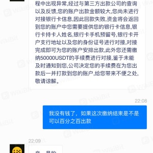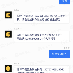 我在LBANK交易所交易,在提币兑换成人民币提现时,客服说要缴纳40000多美元的税,缴纳完之后又说银行账户核查,又要交50000美元的手续费,才可以安排打款。这是什么道理?我自己赚的币不能提现,还要缴税,手续费,真是黑平台,要曝光它,打着服务用户的幌子来骗取客户的血汗钱……