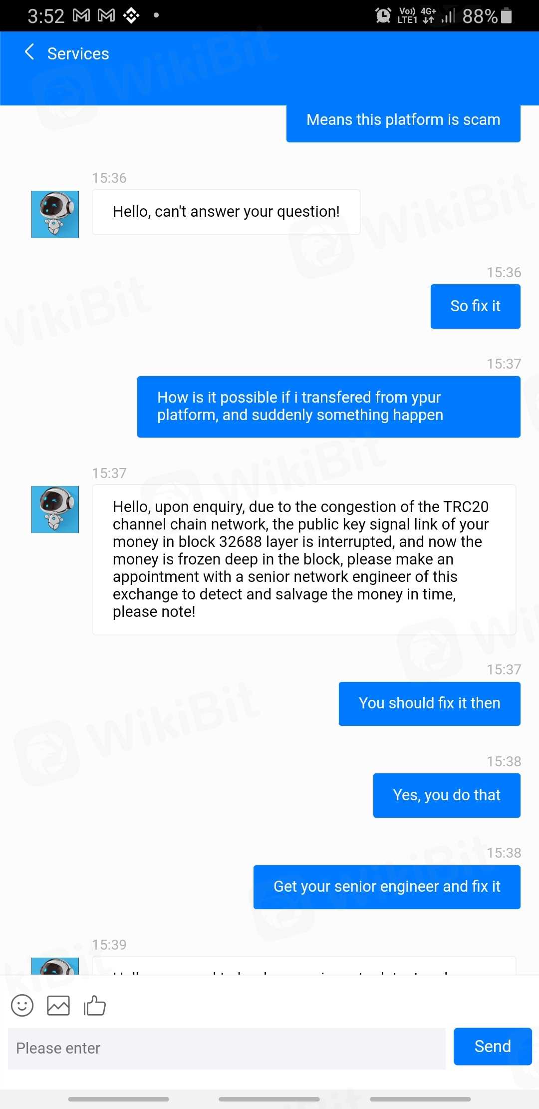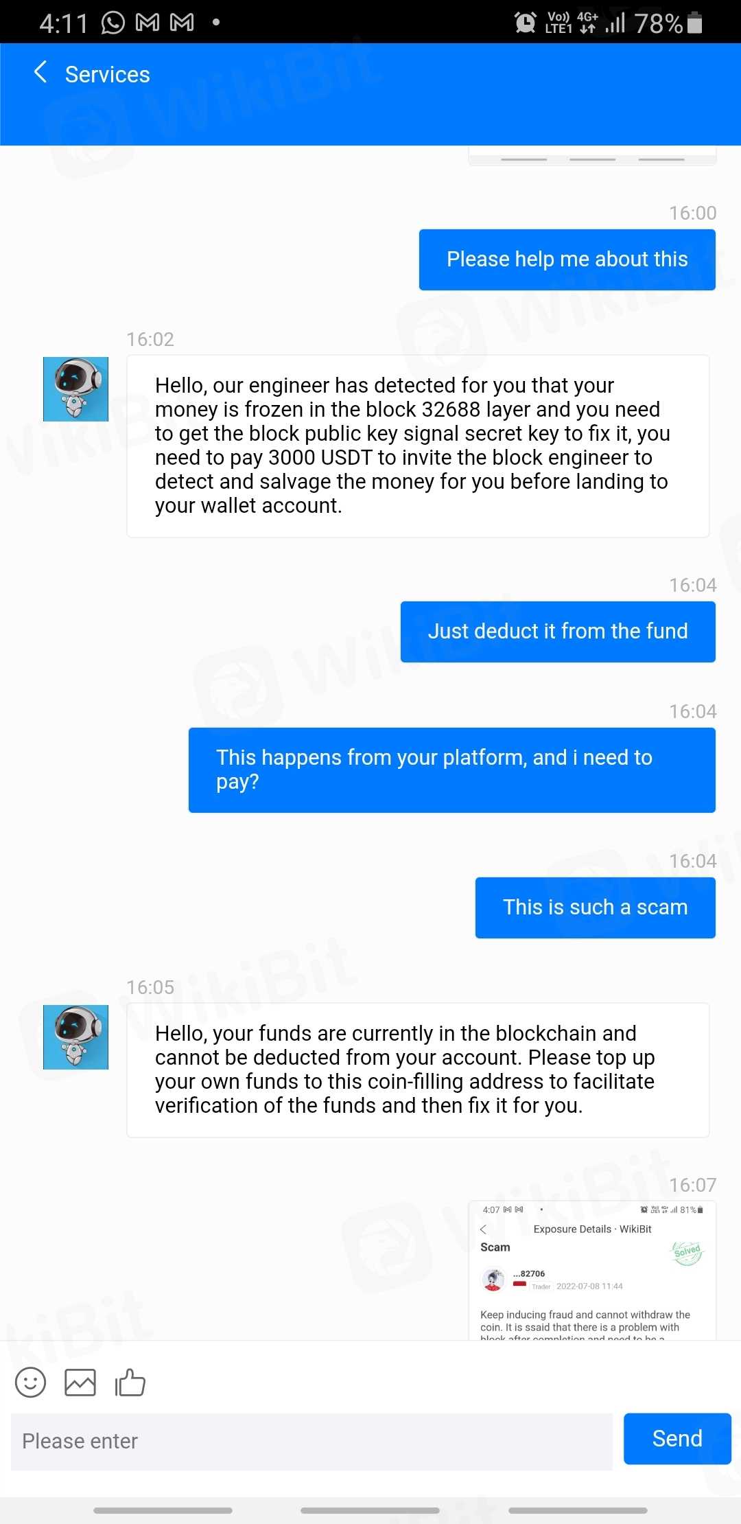 ลองถอนเงินดูก็บอกว่าต้องใช้เวลา mor ตรวจสอบ แล้วก็ขอเป็นสมาชิกถ้าอยากให้เร็วกว่านี้ต้องรอ 12 ชม. รออีก 3 ชม. แล้วก็บอกว่า เงินติดอยู่ใน blockchain และต้องจ่าย 300usdt