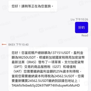 Bkexcoin該平台宣稱受MAS監管,實際詢問新加坡金管局回覆無此平台,還會以IRAS的名義向你索取稅金,實際繳納後可以出金但是不會到自己的第三方錢包,是黑平台,請留意,https://bkexcoin.net