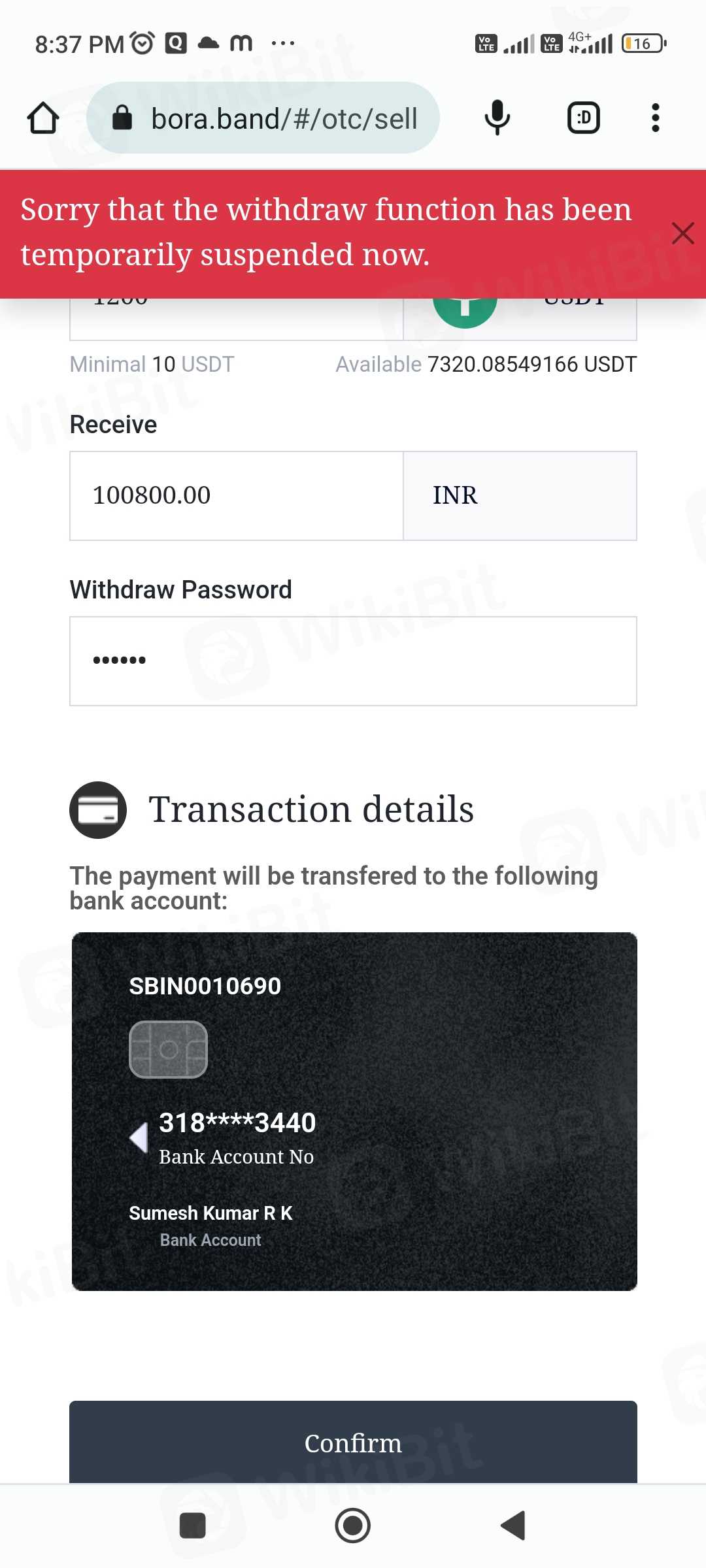 ฉันไม่สามารถถอนตัวจาก Bora ฉันมี 7500usdt ในบัญชีของฉัน Bora โกงประชาชนผู้บริสุทธิ์ในอินเดีย
