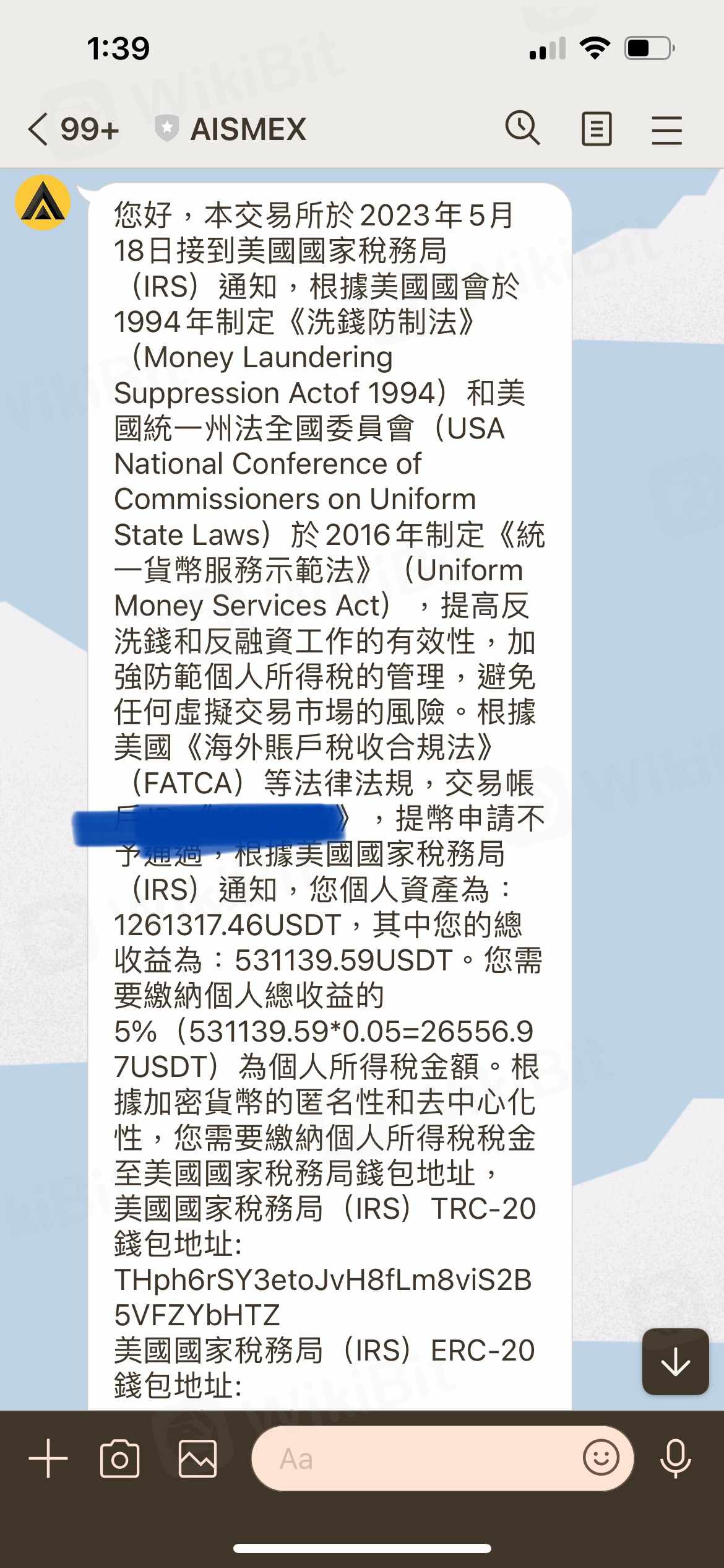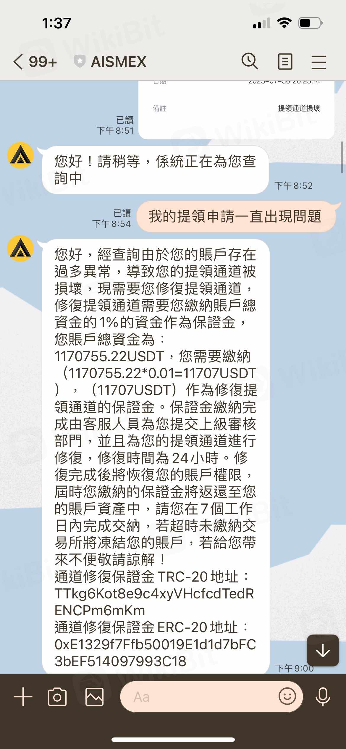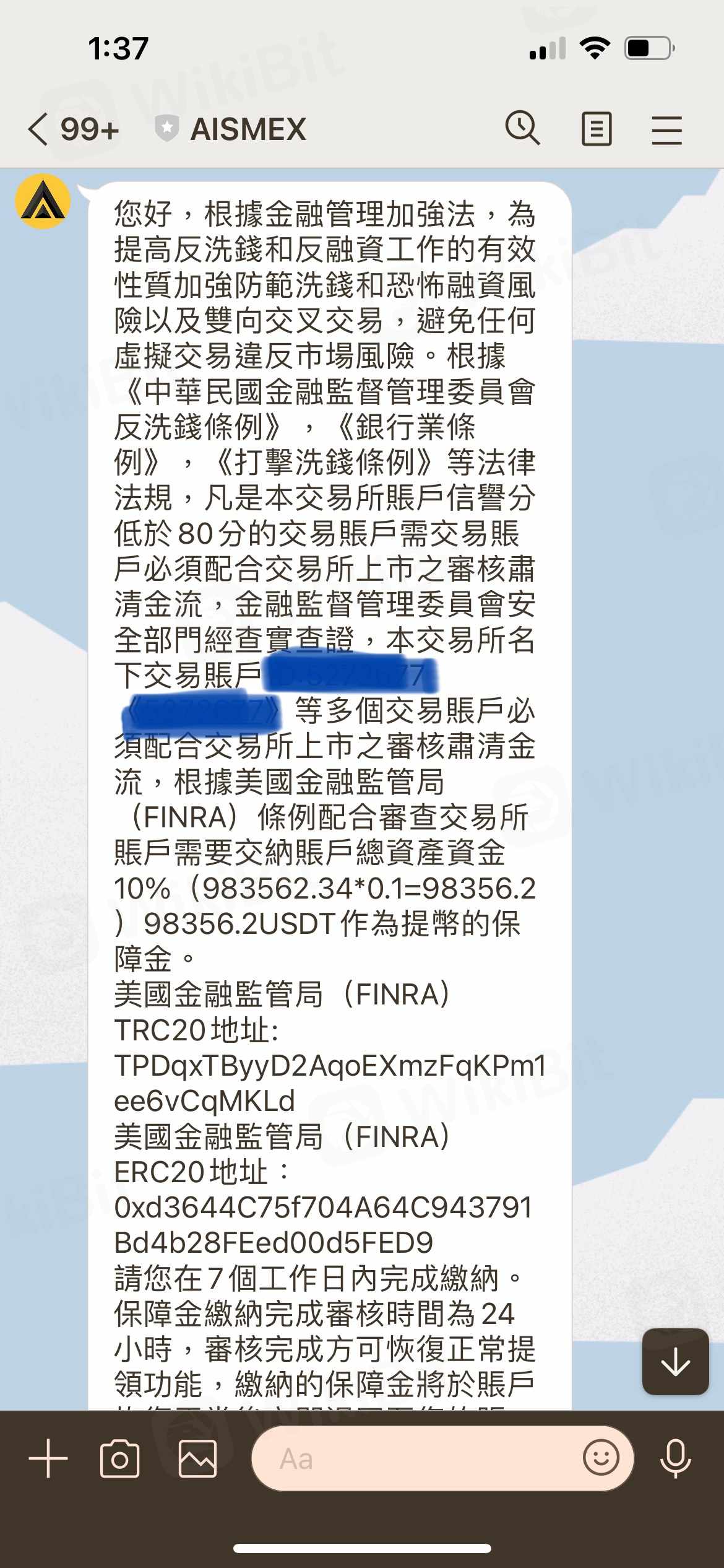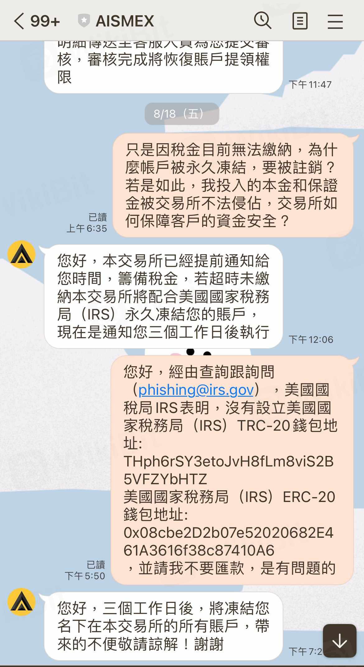 AISMEX或AISM 是一個黑平台, 一開始投資收益小額可以領出, 等到投人多筆資金, 產生較多收益時, 在提領時以各種理由要求繳交防止洗錢的自證金, 提幣保證金, 提領通道修復保證金和稅金, 不交就凍結帳戶, 直接不法侵佔投資人投入所有資金和繳交的保證金, 投資人才發現被詐騙, 請大家注意